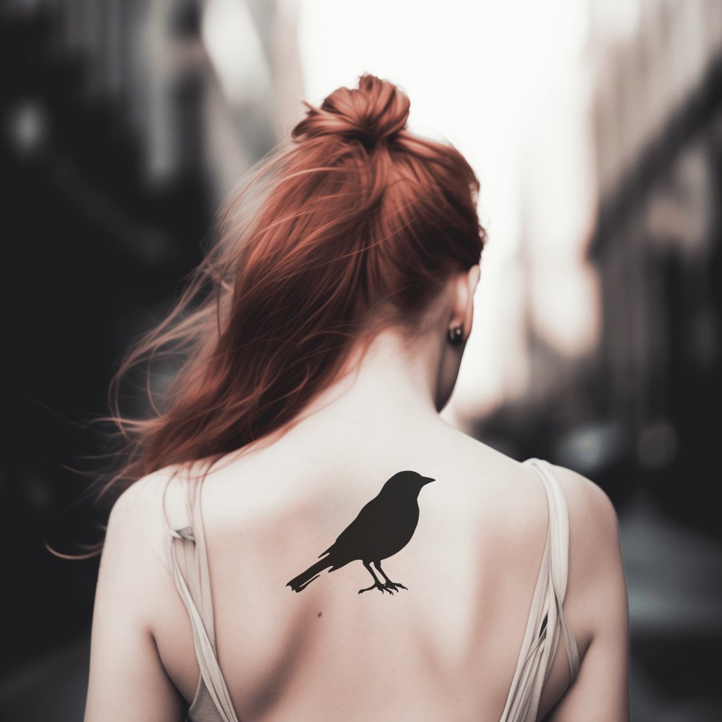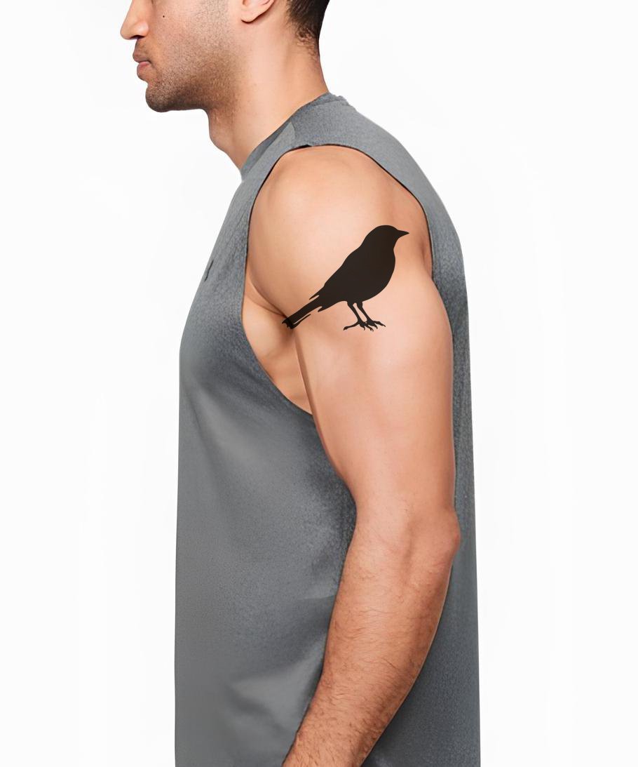 Immerse yourself in the simplistic artistry of this minimalist sparrow tattoo design. Captivate attention with its beautifully crafted bird silhouette, embodying the spirit of freedom and courage of the animal kingdom. Ideal for those who appreciate understated elegance in their body art.