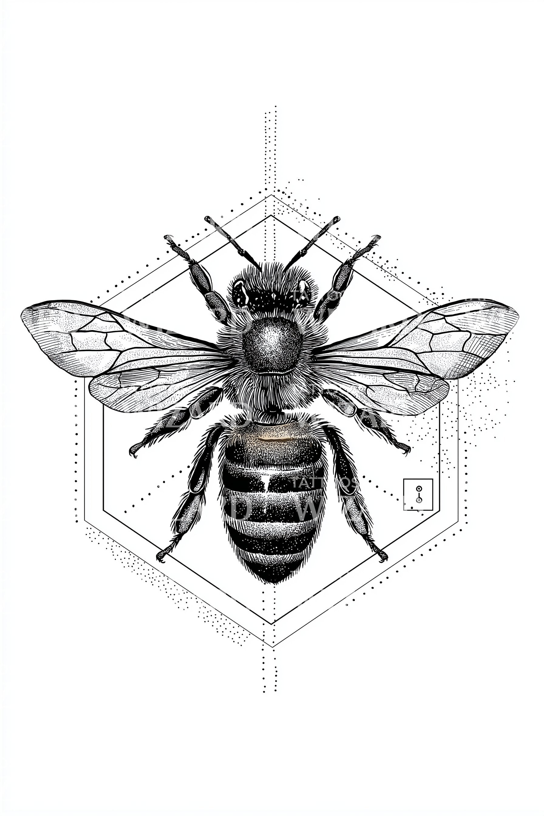 Blueprint Bee Geometry Tattoo Illustration