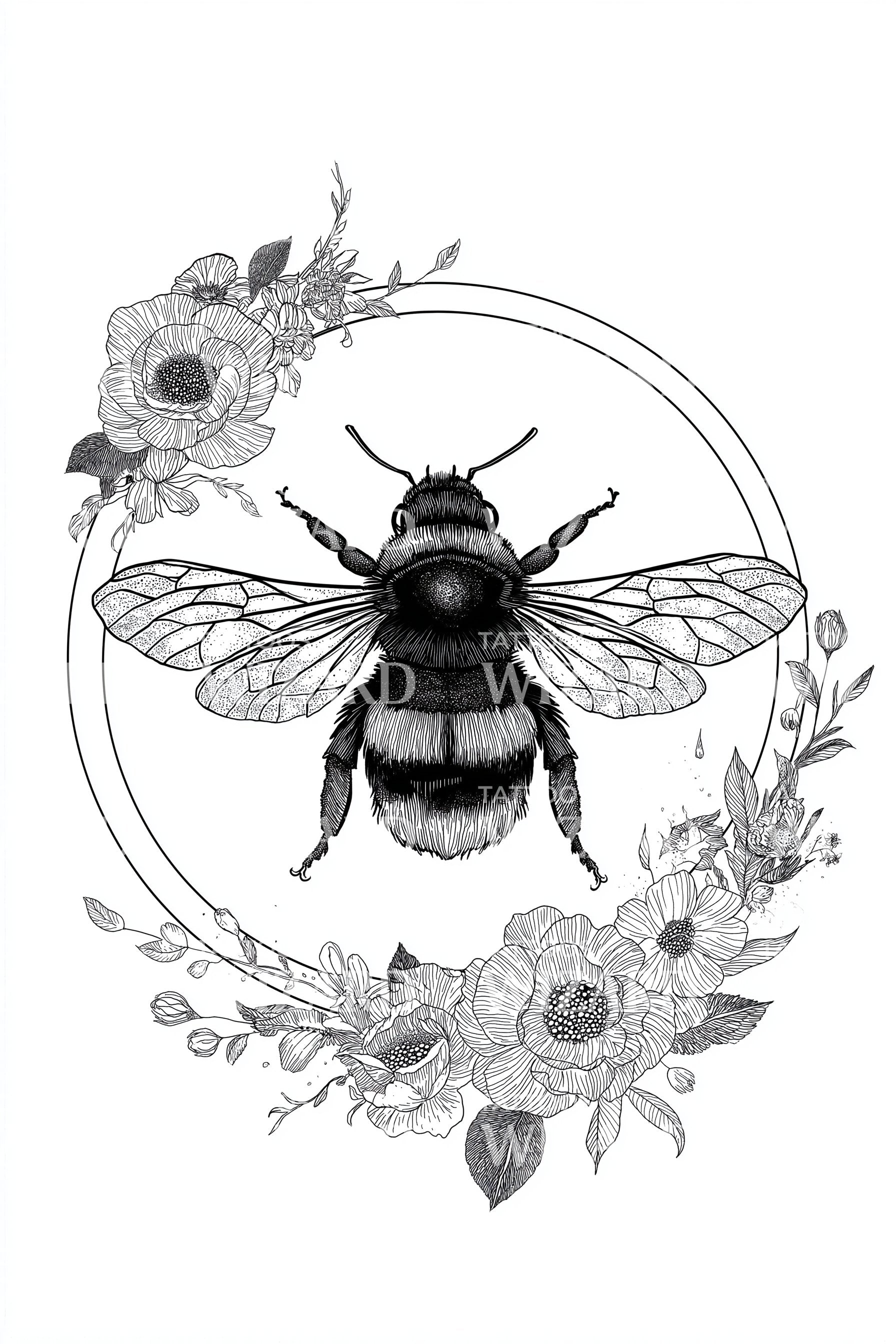 For the one who turns effort into sweetness, who trusts nature’s quiet math. A bee held by botanical garland and flowers, a wreath of return and renewal. You claim a life built from small devotions, not noise. Let your pulse be pollen and prayer.
