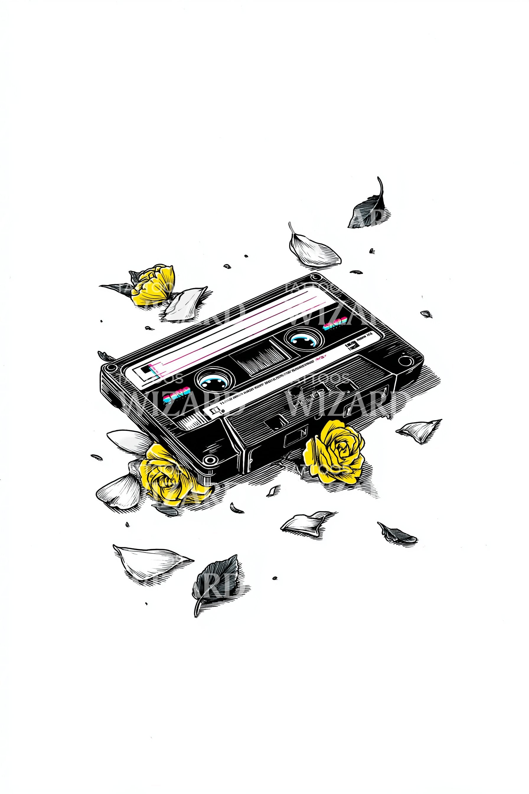Dive into nostalgia with this newschool tattoo design, ingeniously illustrating a broken cassette tape. With a perfect blend of retro beats and grunge feel, it radiates musical vibes for true connoisseurs. An expressive emblem of your unwithered love for classic music and enduring soulful charm.