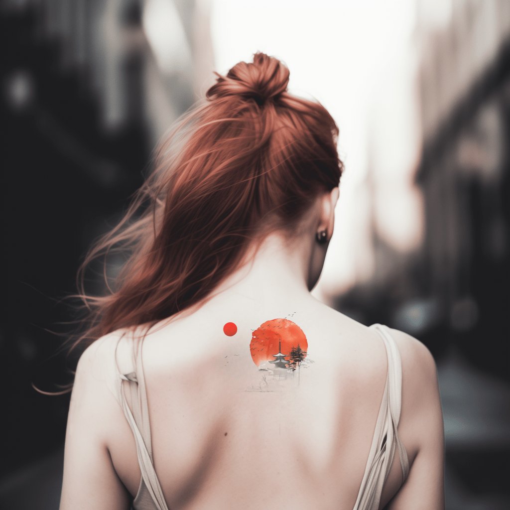 Chinese Pagode at Sunset Tattoo Design