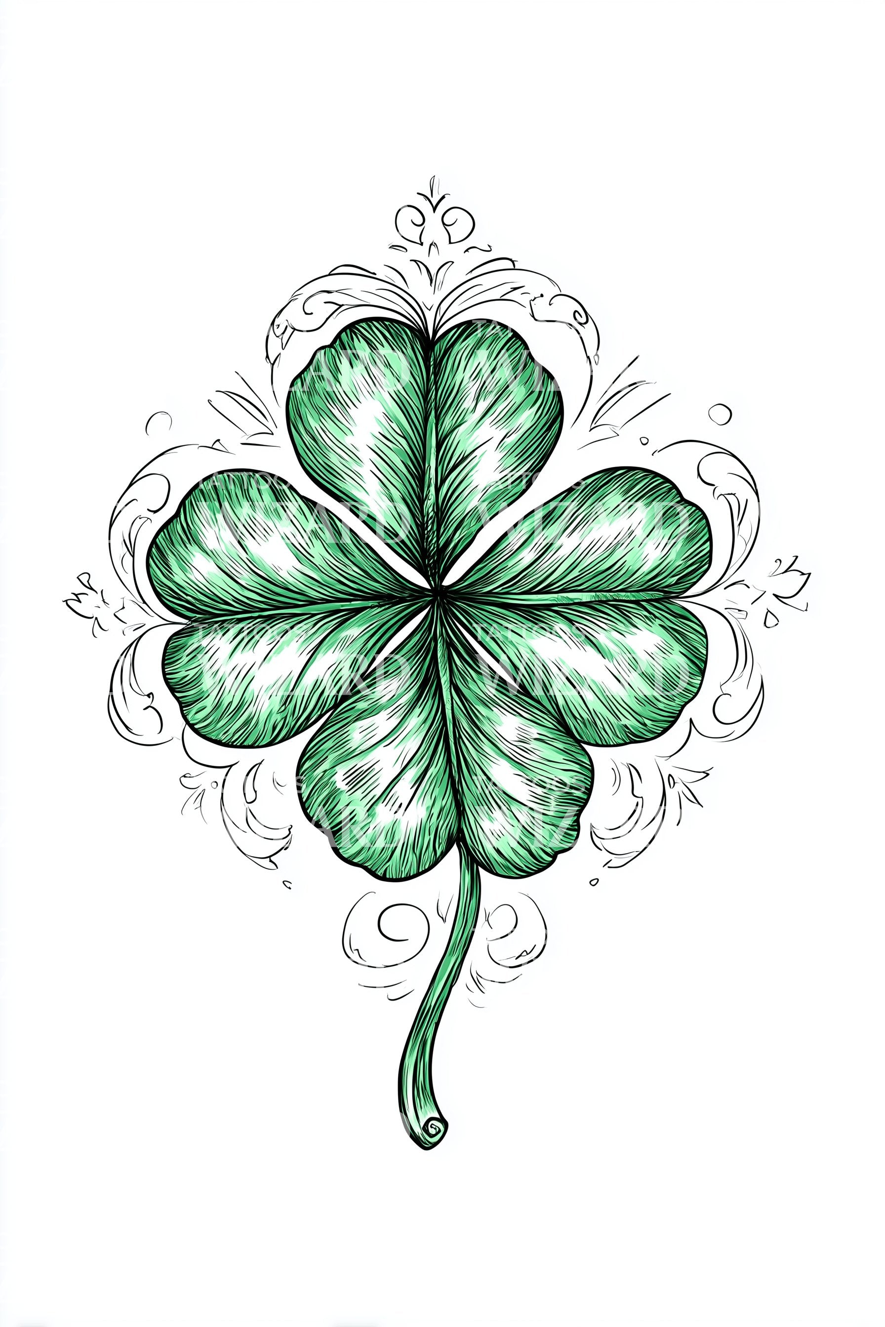 Decorative Green Clover Tattoo Illustration