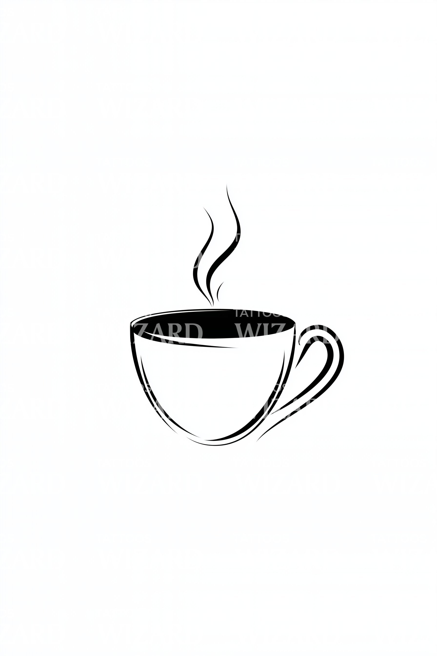 Quiet linework forms a clean ceramic cup, dark surface kissed by two rising curls of steam. This minimalist coffee symbolizes daily ritual, presence, and small comforts. Wearing it feels like morning light: cozy warmth, calm focus, gentle energy. A reminder to sip life slowly, with mindful, steady grace.