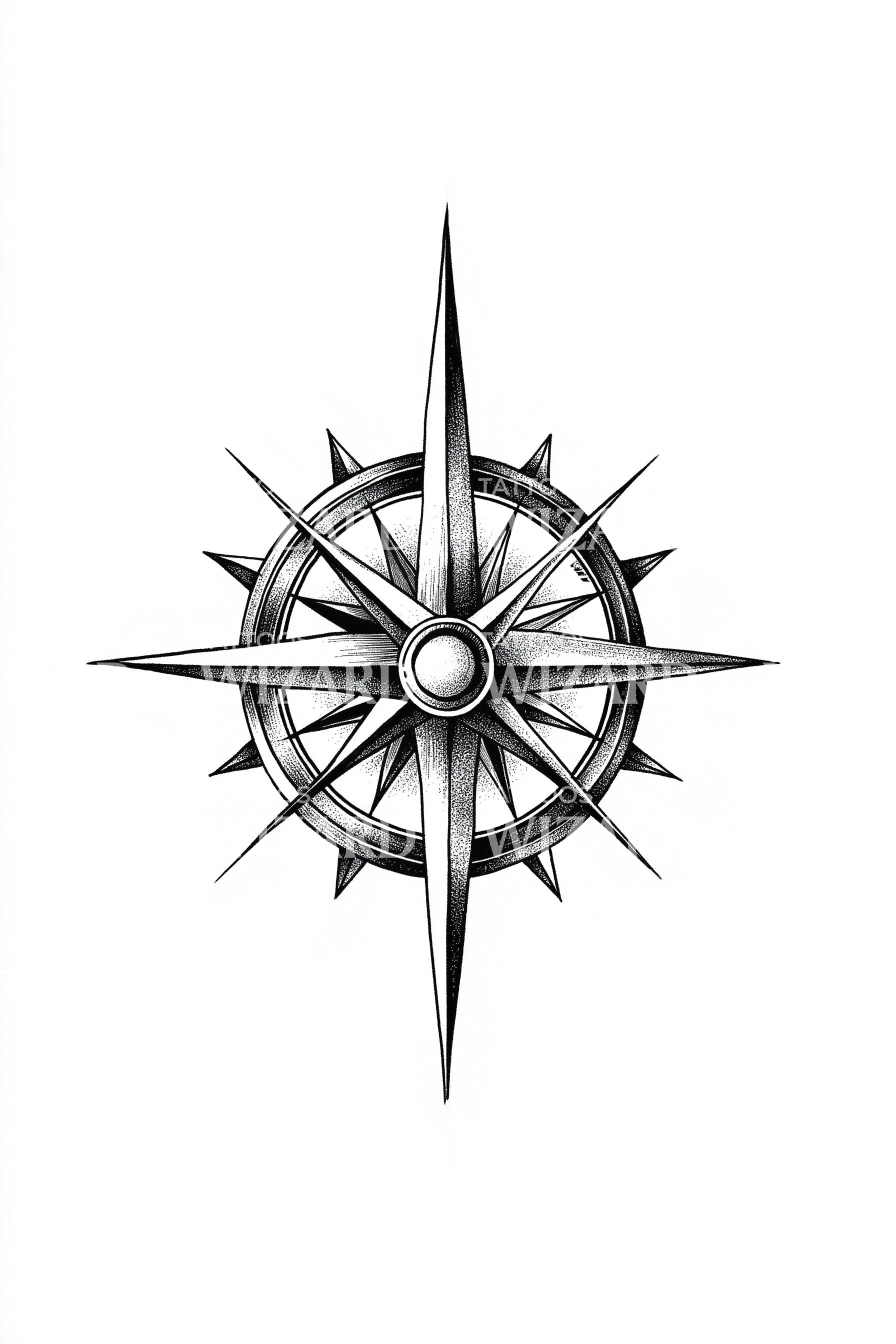 Nautical Compass Rose Tattoo Design