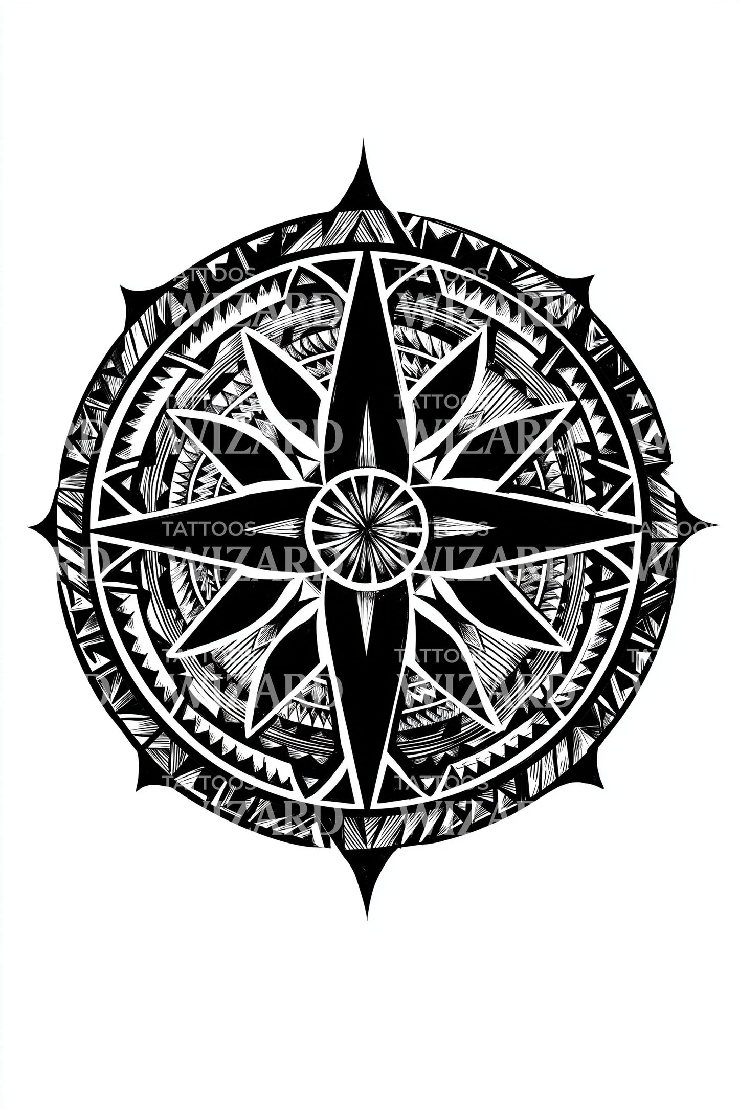 Vintage Compass Rose Tattoo Illustration