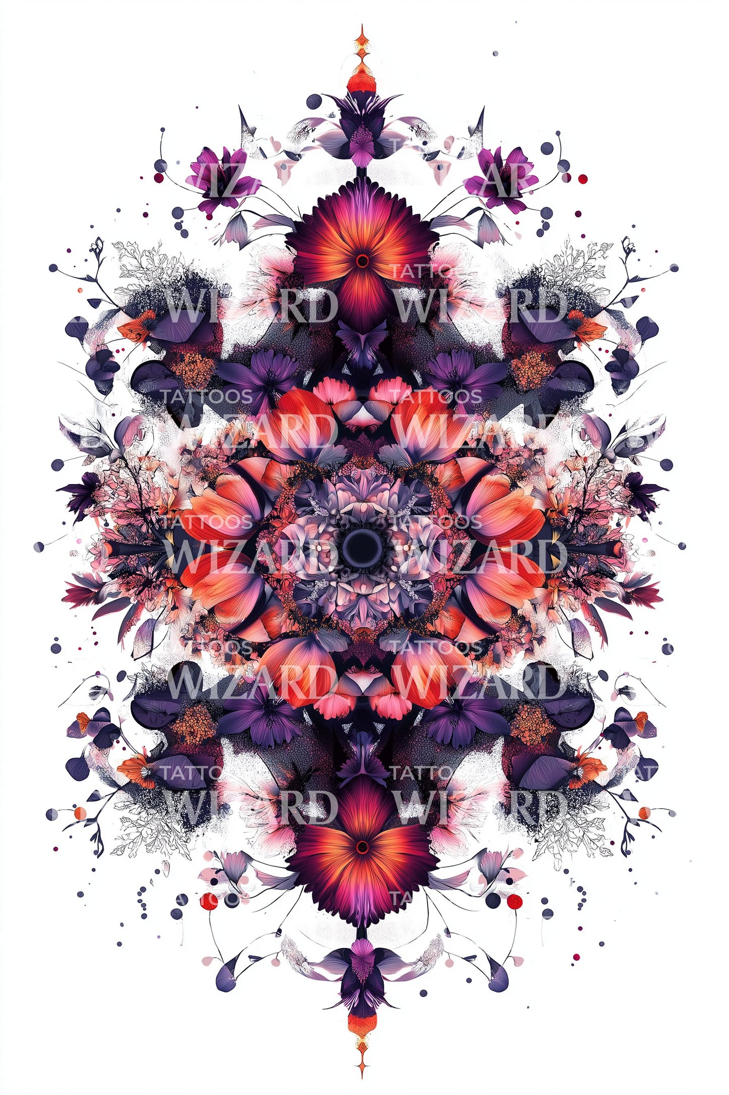 Immerse in the bold beauty of our crimson mandala tattoo design. Filled with abstract symmetry, it embodies fluid formations of splash-style art. Radiating from the center, the detailed petals create an intricate display, lending an air of mystic elegance suitable for every ink art aficionado.