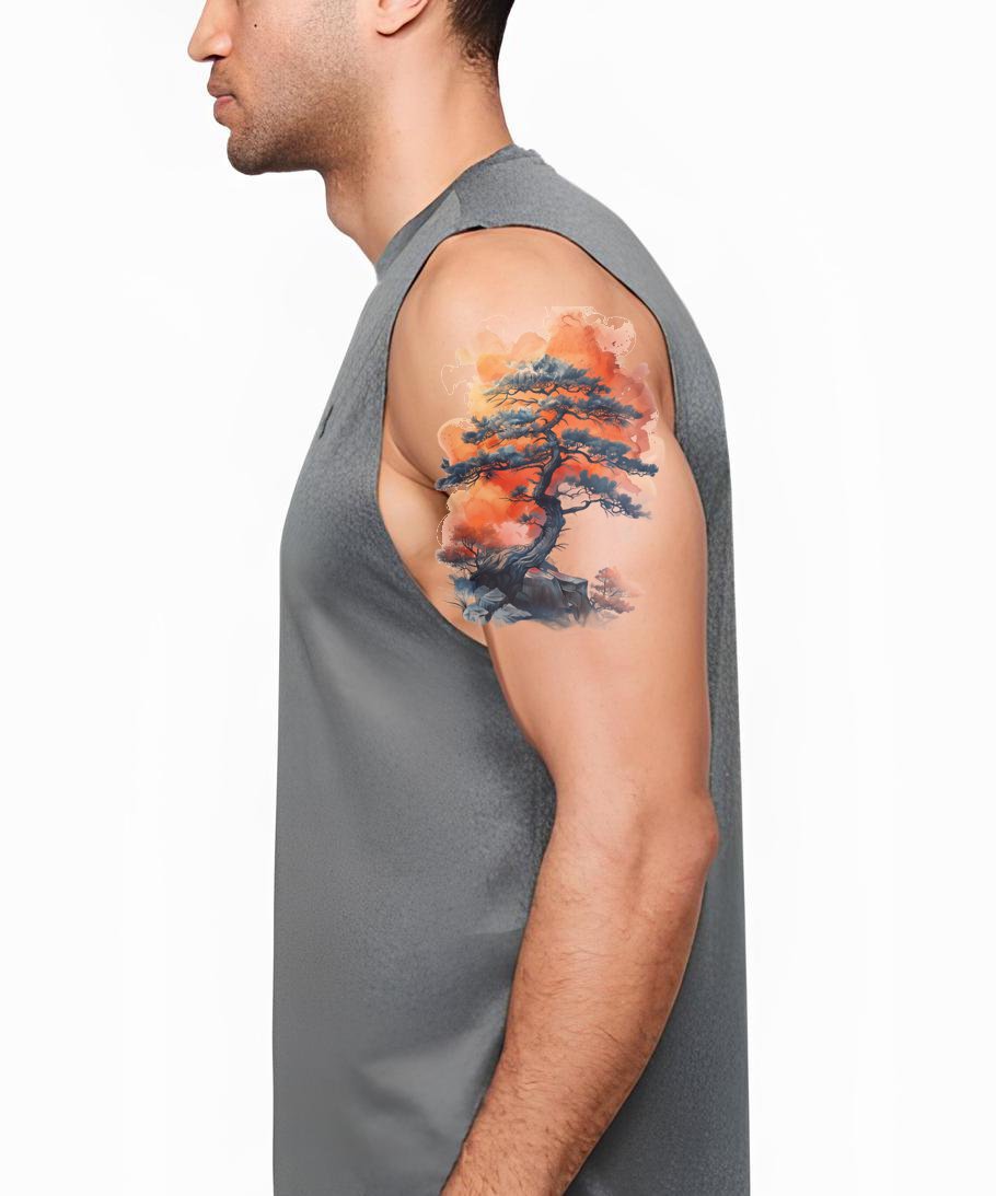 Experience tranquility with this watercolor tattoo design, featuring a majestic cypress tree. With a strong, detailed trunk, delicate floral elements, and peaceful nature-inspired background, it's a serene symbol of resilience and natural beauty, designed for nature lovers and art enthusiasts alike.