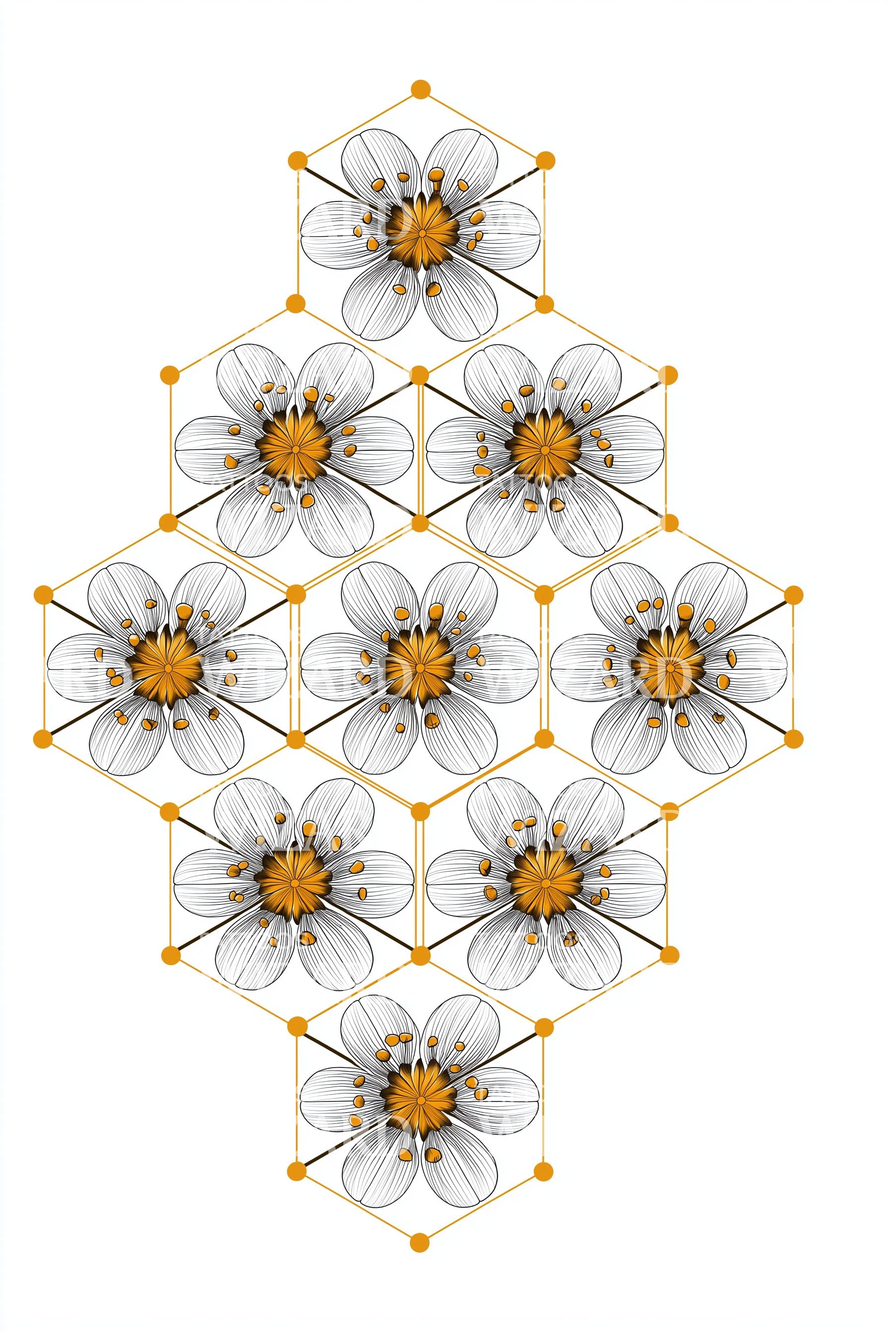 Unleash your boldness with our geometric tattoo design. Blossoming daisies blend harmoniously with structured hexagons, embodying a sweet intersection of nature and precision. This pattern showcases the intricate honeycomb formation, fusing stigma and petals into an aesthetically pleasing, symmetrical masterpiece. A definitive statement for all tattoo enthusiasts.