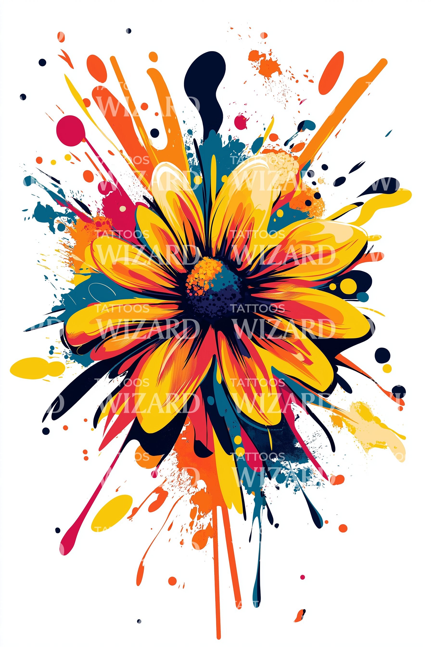 Dive into a vibrant realm of creativity with our watercolor daisy tattoo design. It’s a beautiful merger of abstract and fun, graced with color splashes that create a lively pop. This One-of-a-kind tattoo design reflects whimsy and free-spirited charm, perfect for the color-loving soul.