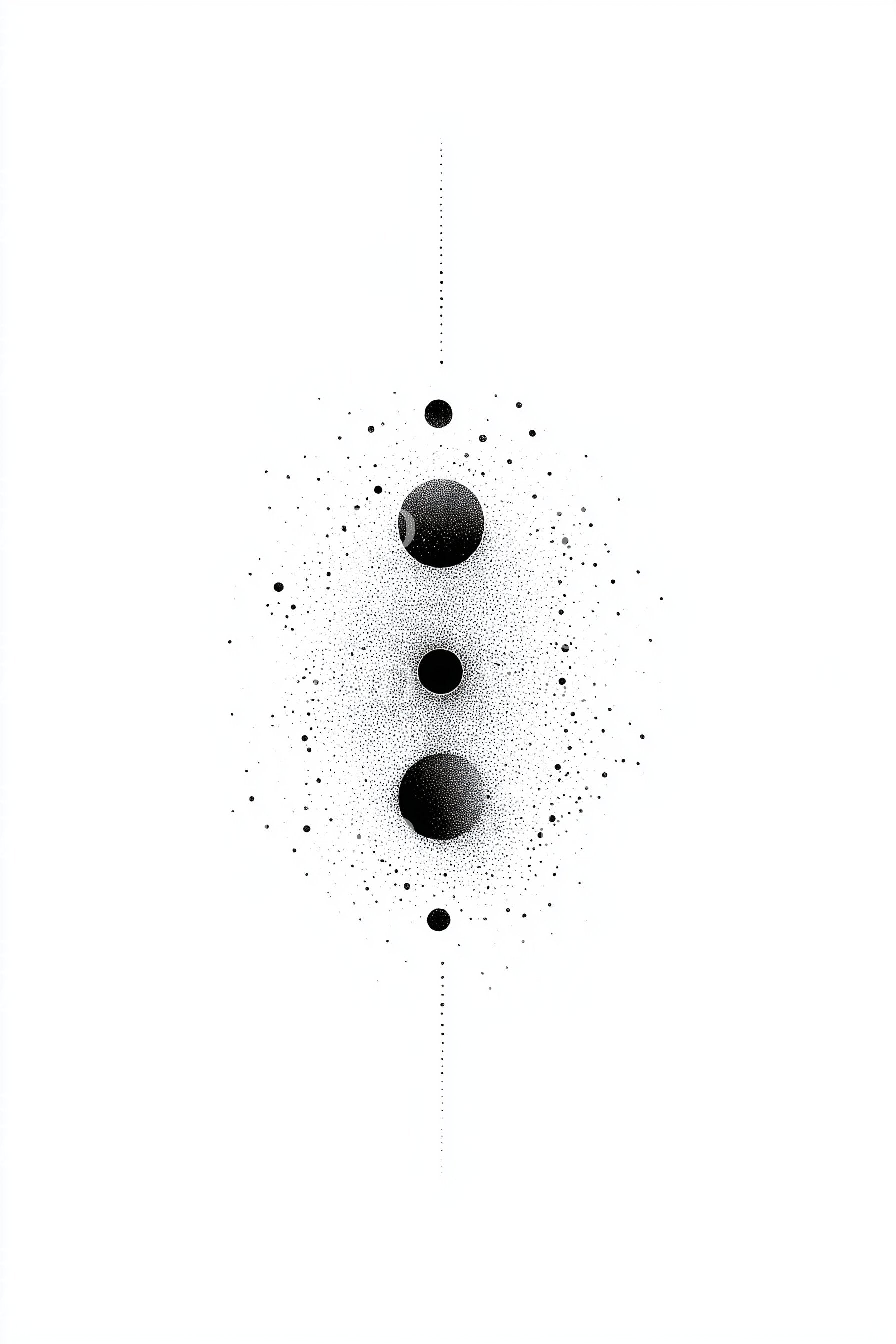 This minimalist dotwork tattoo design impeccably marries astronomy with art! Celebrate the planetary phases in their resplendent glory, delicately woven through fine dots. It's an exquisite portrayal of space, offering a unique nod to celestial enchantment. Perfect for anyone who appreciates the beauty of the universe.