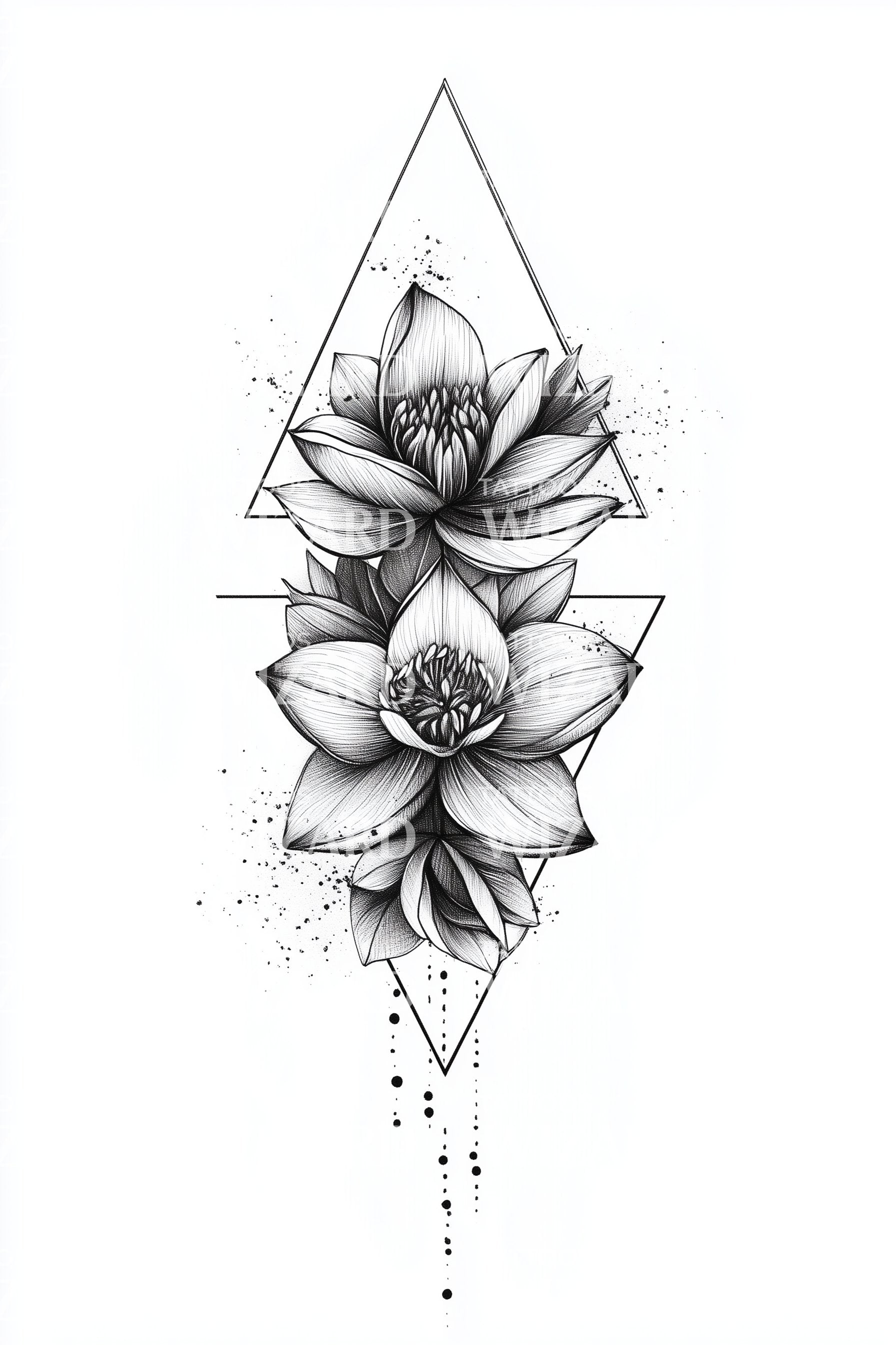 This modern geometric tattoo design beautifully merges the delicate jasmine flower within a unique dotted diamond framework. Every line and dot meticulously highlights the beauty and sophistication of nature tributing minimalistic aesthetics. It's a harmony of geometry and botany catered to the modern tattoo enthusiast.