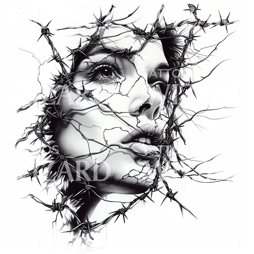 Woman's Face in Barbed Wire Tattoo Design