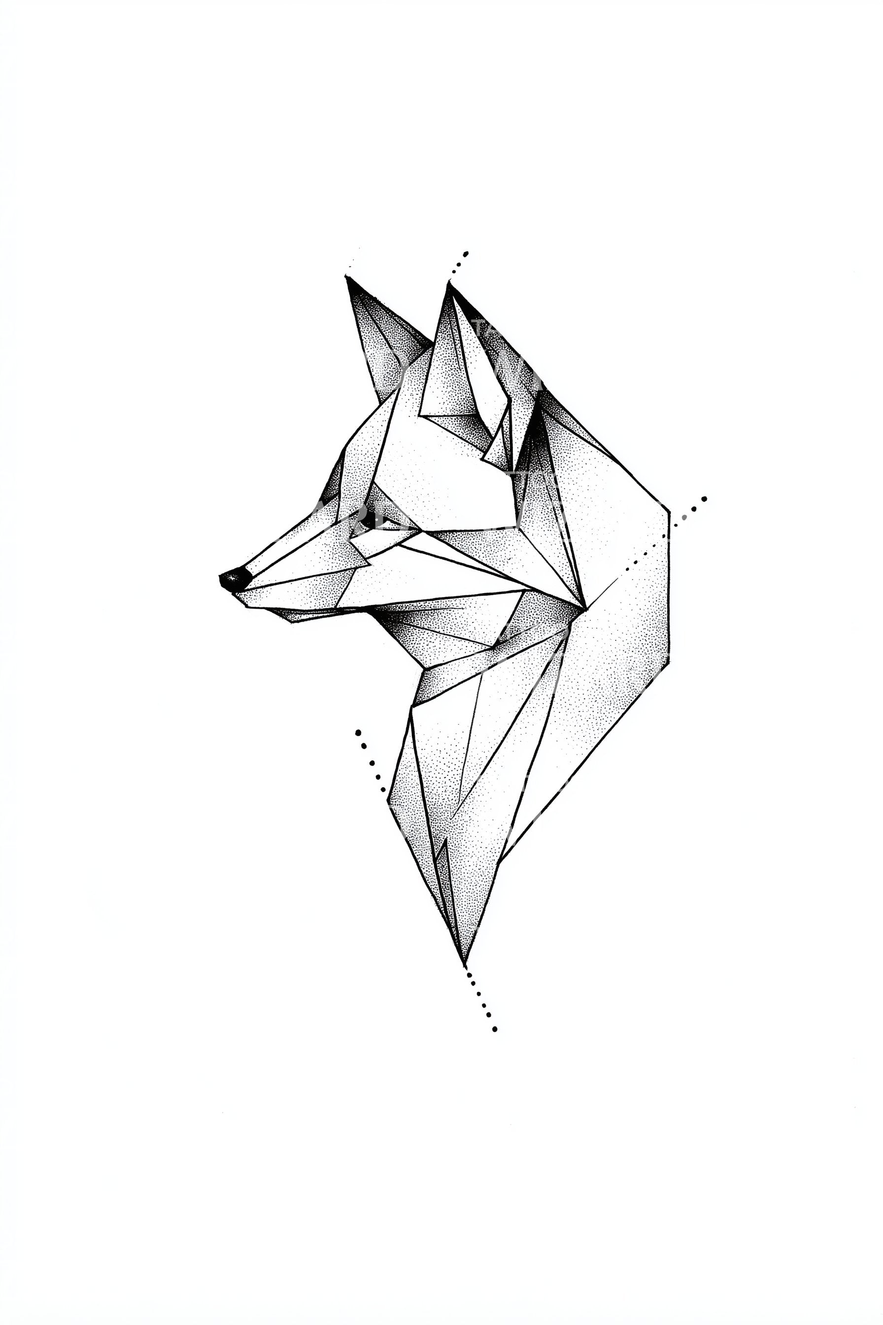 A sleek geometric fox profile built from crisp polygons and clean linework. Balanced symmetry and sharp angles capture wild agility and quiet cleverness. Minimal yet striking, this design suits arms, forearms, calves, or chest, scaling beautifully while preserving detail—perfect for modern, nature-inspired ink with subtle negative-space highlights throughout.
