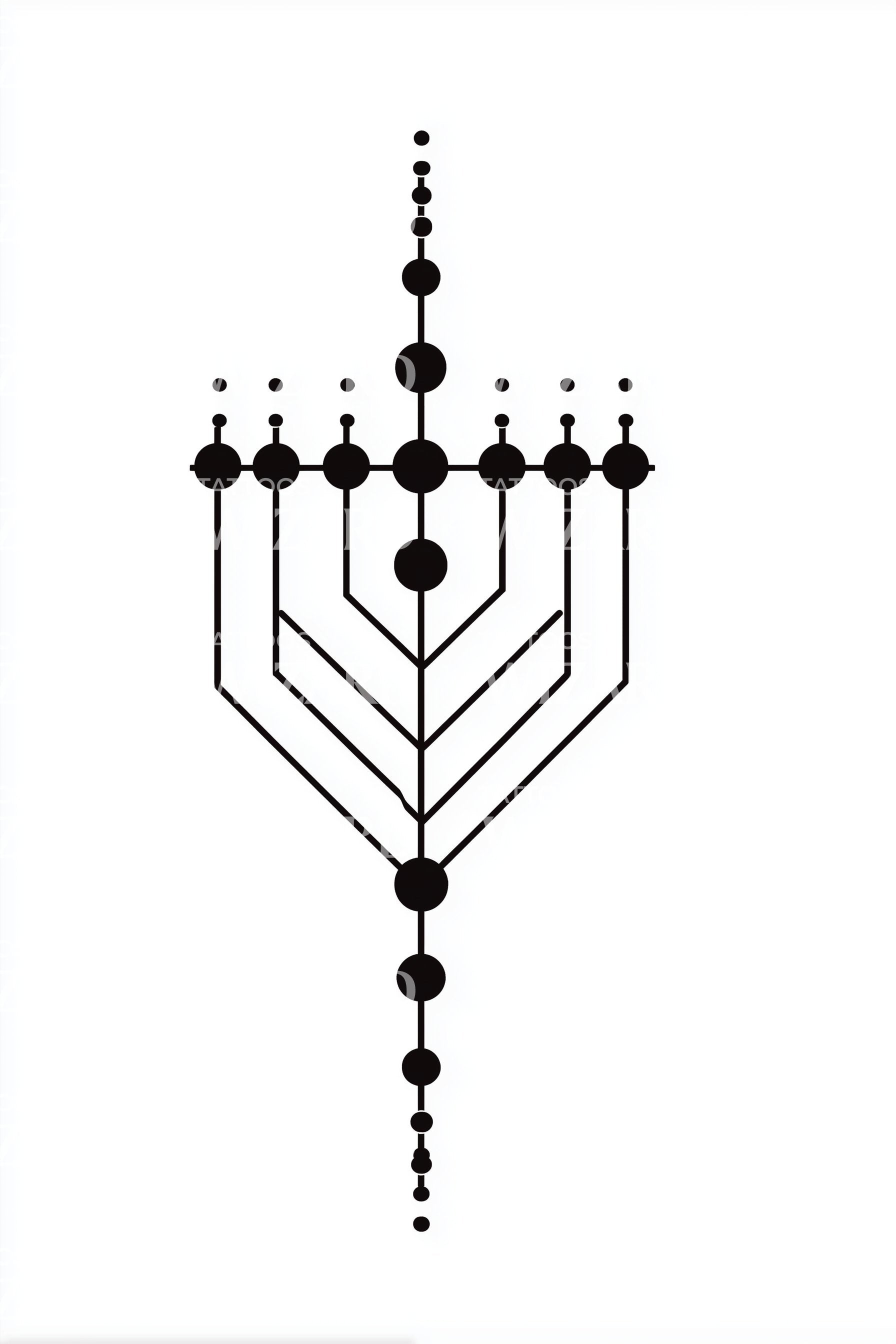 Geometric menorah of crisp lines and ascending circles, the shamash rising like a constellation of sparks. Minimalist chevrons cradle eight lights, mapping Hanukkah’s journey from scarcity to renewal. Symbolic geometry suggests guidance, lineage, and hope, giving the wearer quiet brightness, steady courage, and holiday-rooted belonging in every season.