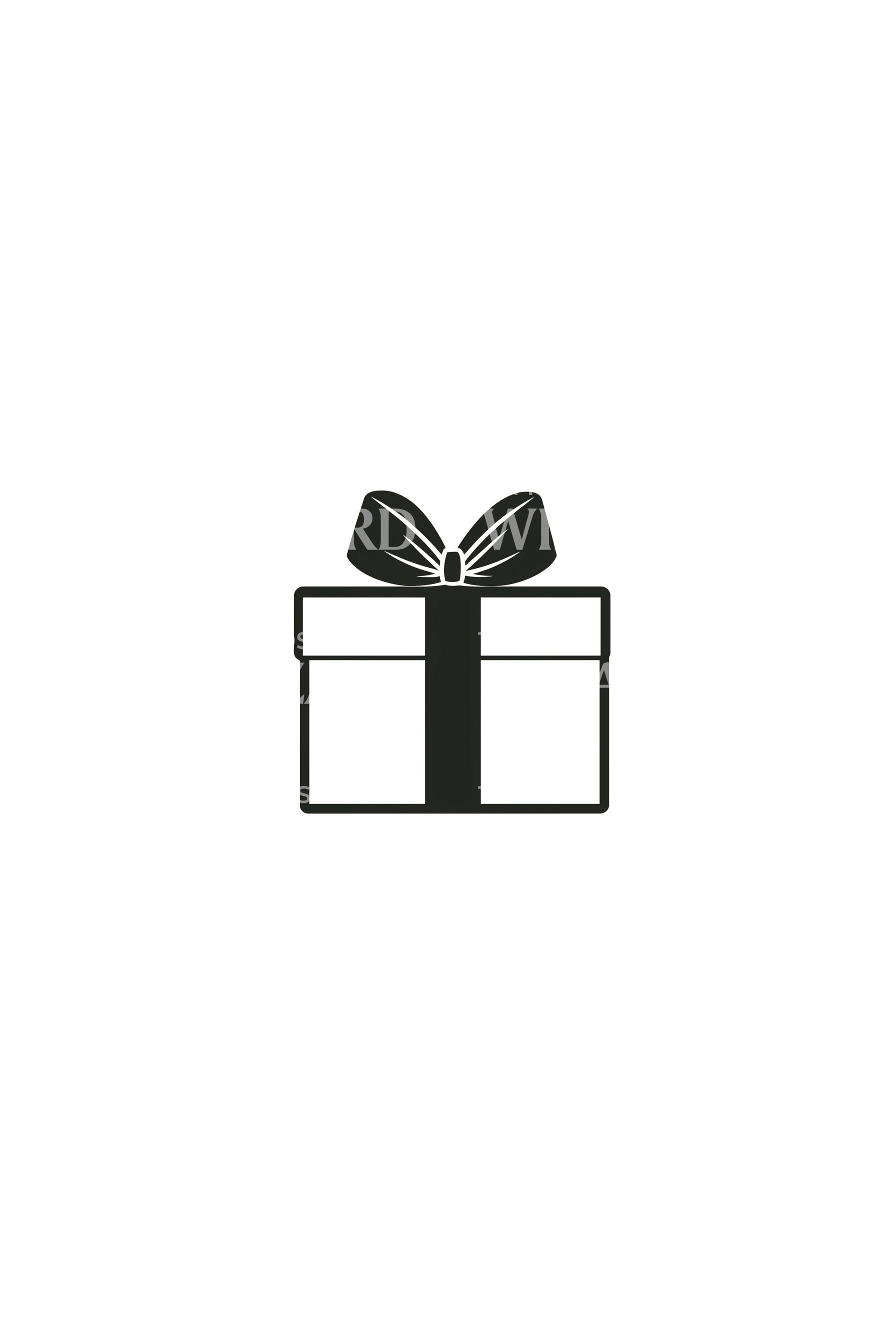 Crisp black lines shape a tiny giftbox icon, square and modern, with a neatly tied bow and generous negative space. The box symbolizes surprise, gratitude, and the quiet promise of new beginnings. Wearing it feels like carrying a small celebration, a reminder to receive, share, and cherish presence.
