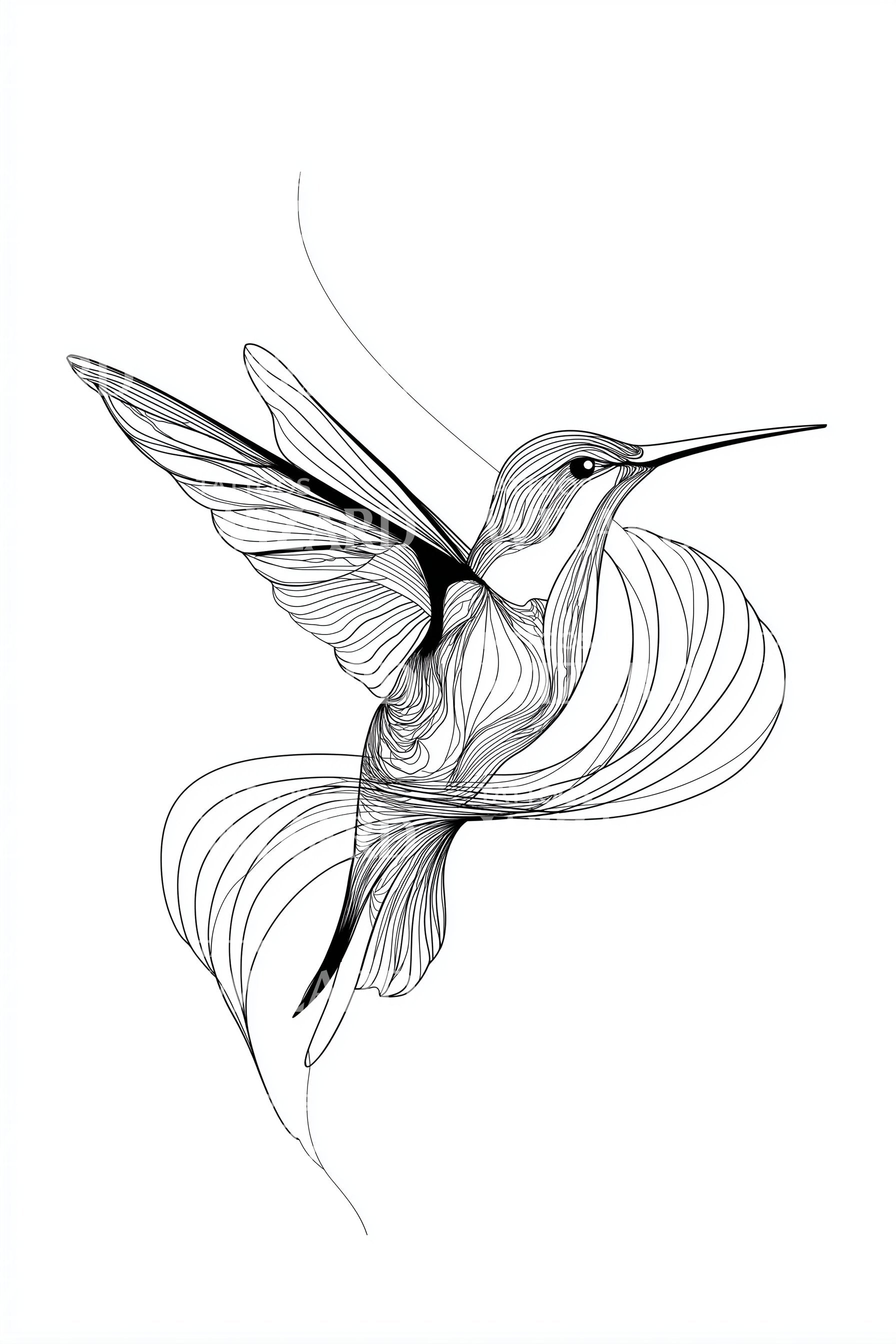Unleash your spirit of freedom with this graceful sketch of a hummingbird in flight. This tattoo design encapsulates the enchanting beauty of this dynamic bird, eloquently portrayed in a sketch. The piece echoes true elegance, making it a memorable expression of grace and poise. Perfect for those cherishing beautiful aesthetics.
