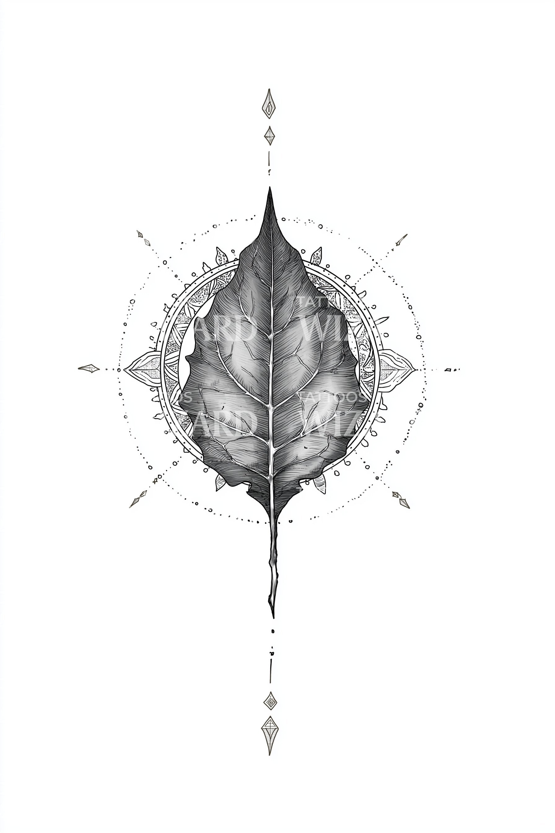 Leaf Compass Ornament Tattoo Illustration