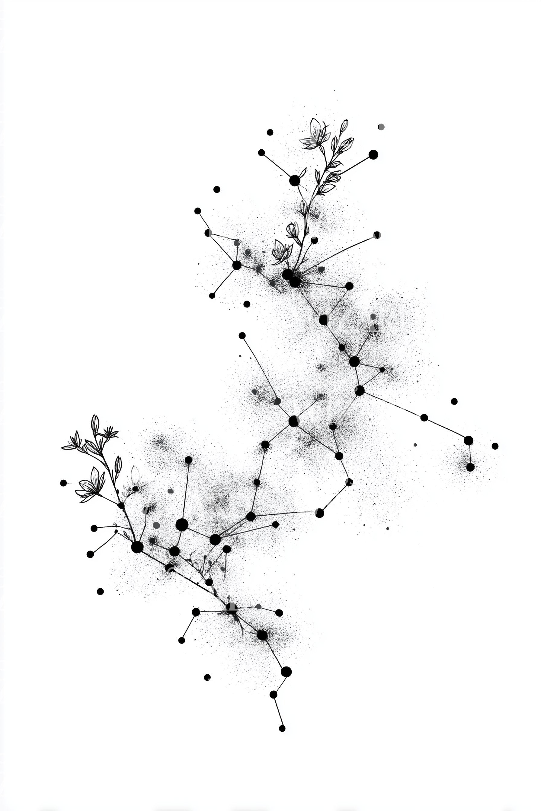 Experience the allure of the heavens with our minimalist celestial tattoo design. Featuring an elegant lily forming a stunning constellation, this design is a unique blend of nature and stargazing. The sparse star cluster lends a serene touch, making it perfect for lovers of minimal and meaningful aesthetics.