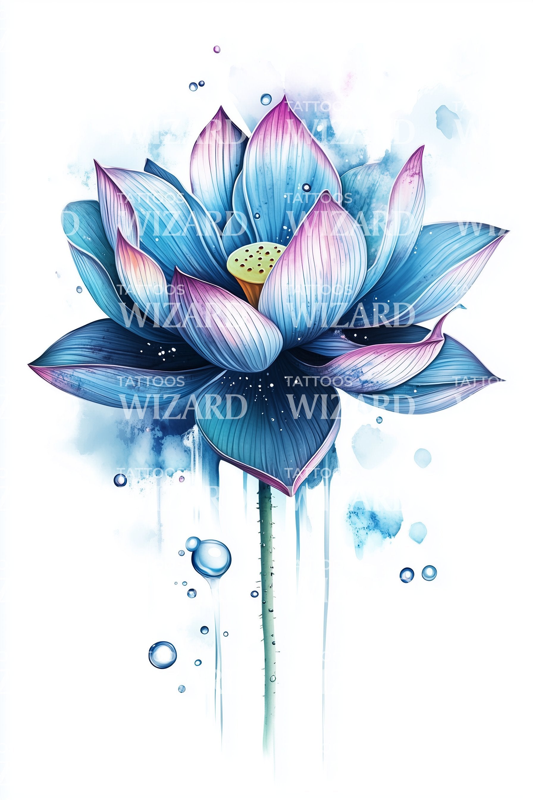 Blue Lotus Splash Tattoo Design