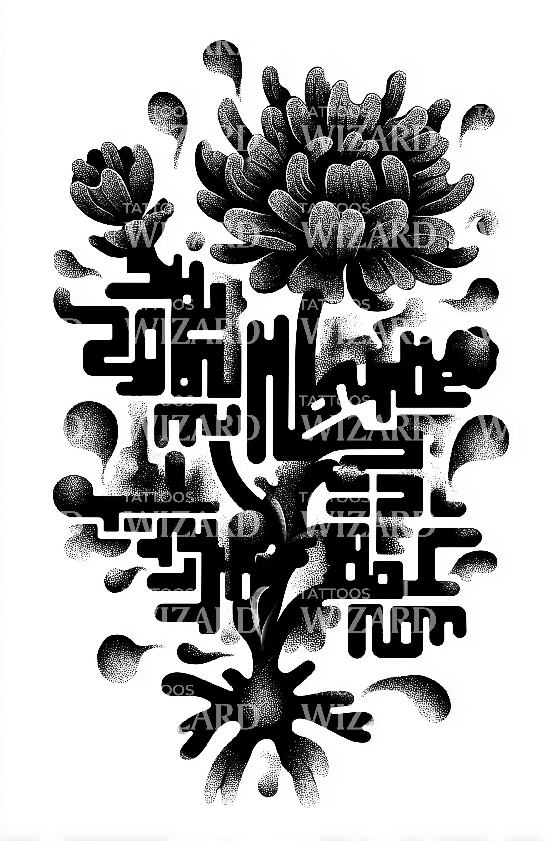 Labyrinth Chrysanthemum Blackwork Tattoo Design