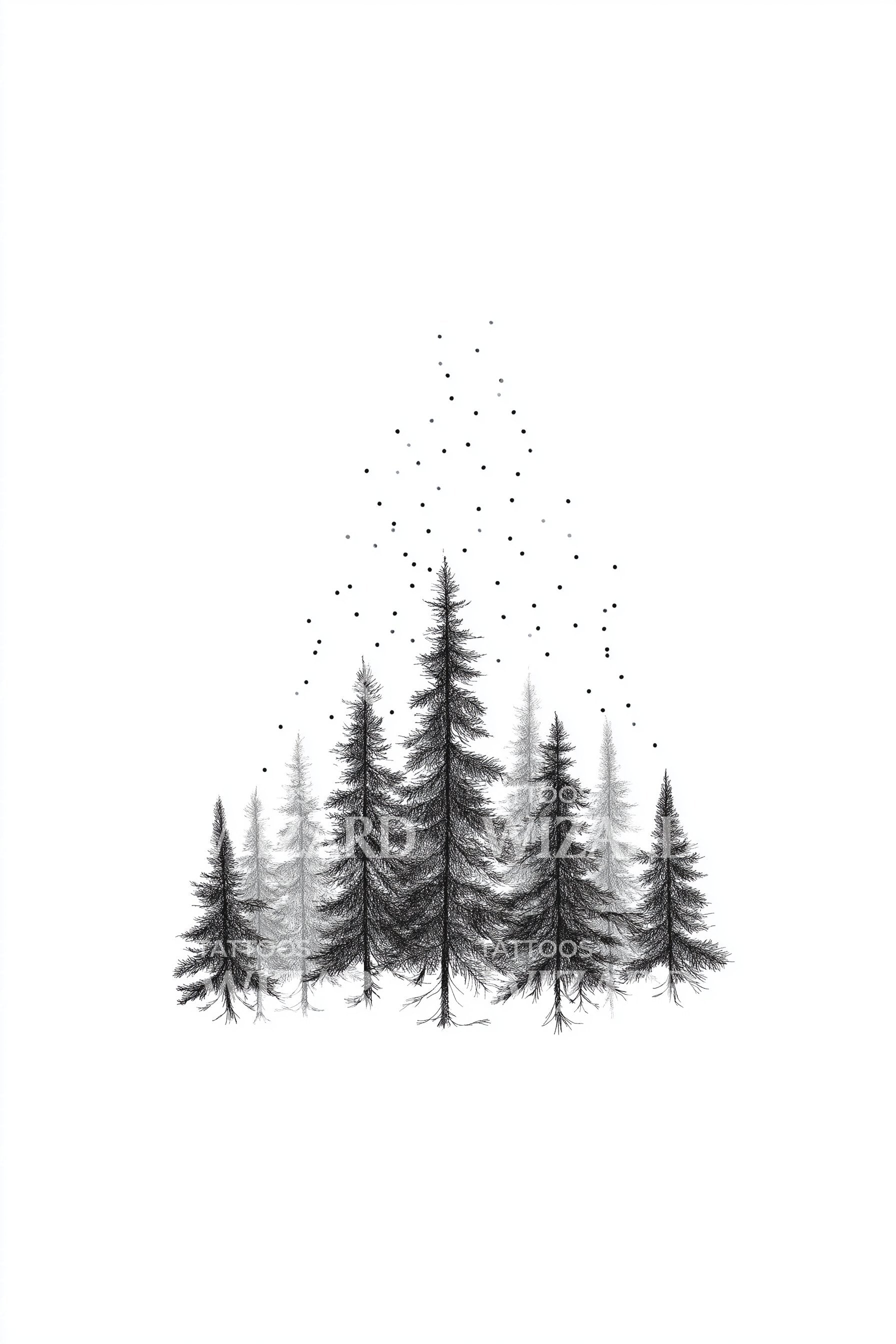 Misty Pine Forest Tattoo Design