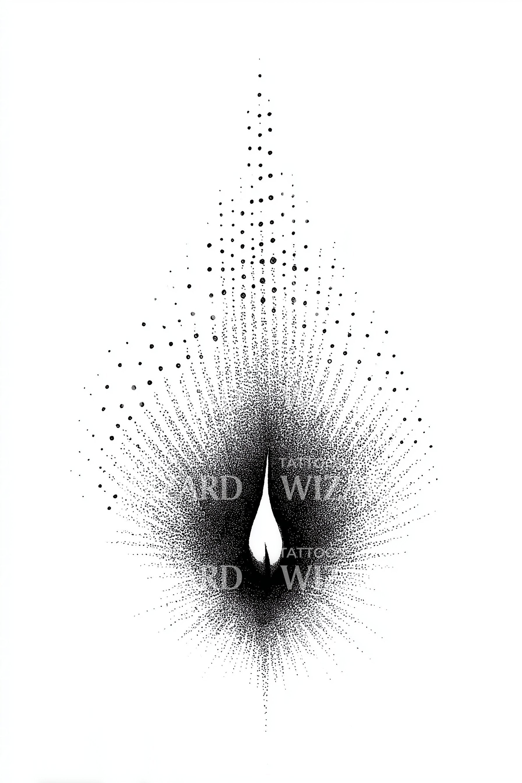 Immerse yourself in the expressive energy of this dotwork tattoo design. Perfectly punctuated, it manifests a radiant burst, echoing a tear shape with a sparkling effect. This handcrafted artwork showcases the unique interplay of dotwork, pulsating energy and a brilliant sparkle. Enhance your skin art collection with its distinctive allure.