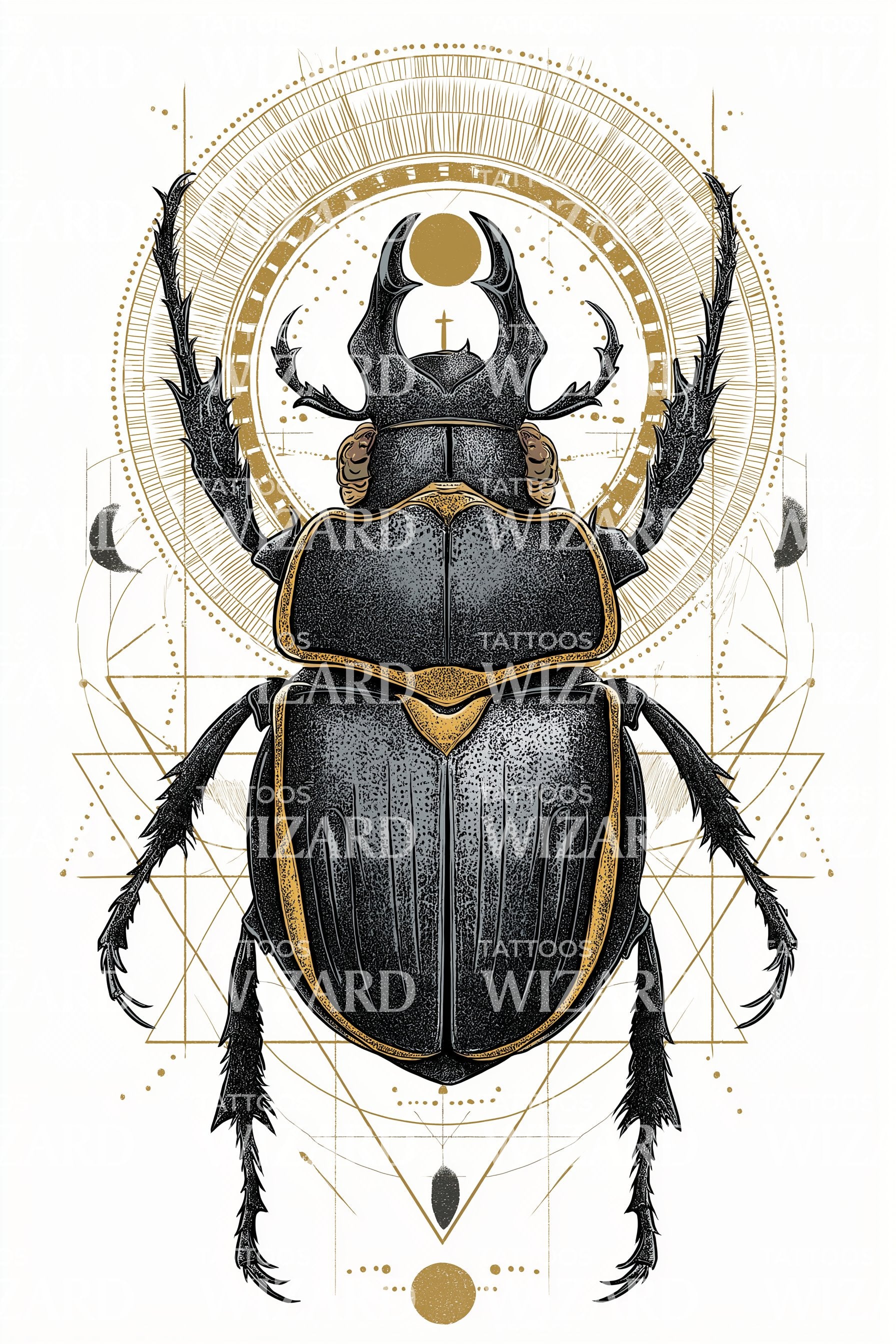 Scarab beetle as royal vow, a hymn to renewal and unbreakable will. For the one who knows power is patient, who lets discipline turn into gold. Ornamental geometry becomes a private law: move with purpose, return with light. “A sun carried in silence.”