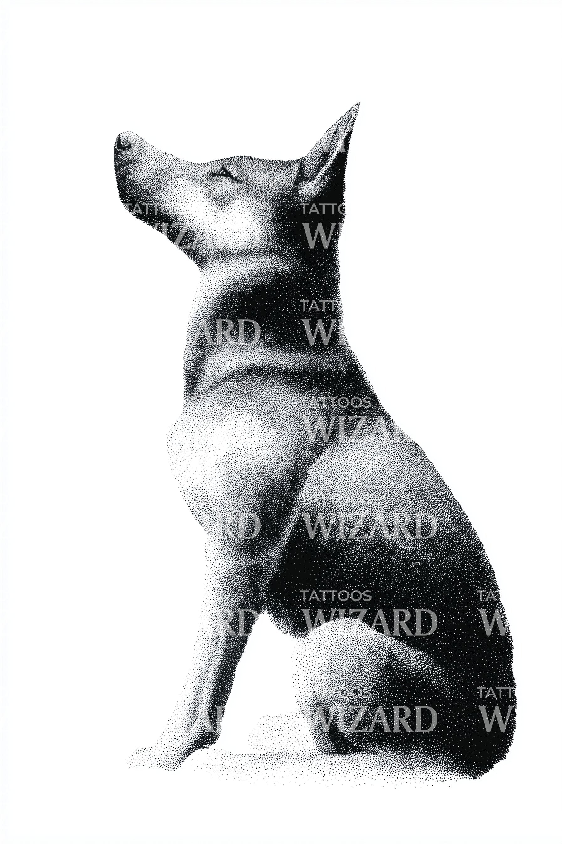 Stargazing fox rendered in meticulous dotwork, soft gradients shaping a serene profile. Speckled shadow suggests night air, ears lifted to quiet constellations. Symbol of sly wisdom and calm spirit, guiding through change. Wearing it feels like a whispered compass, steady breath, animal intuition glowing after dusk.