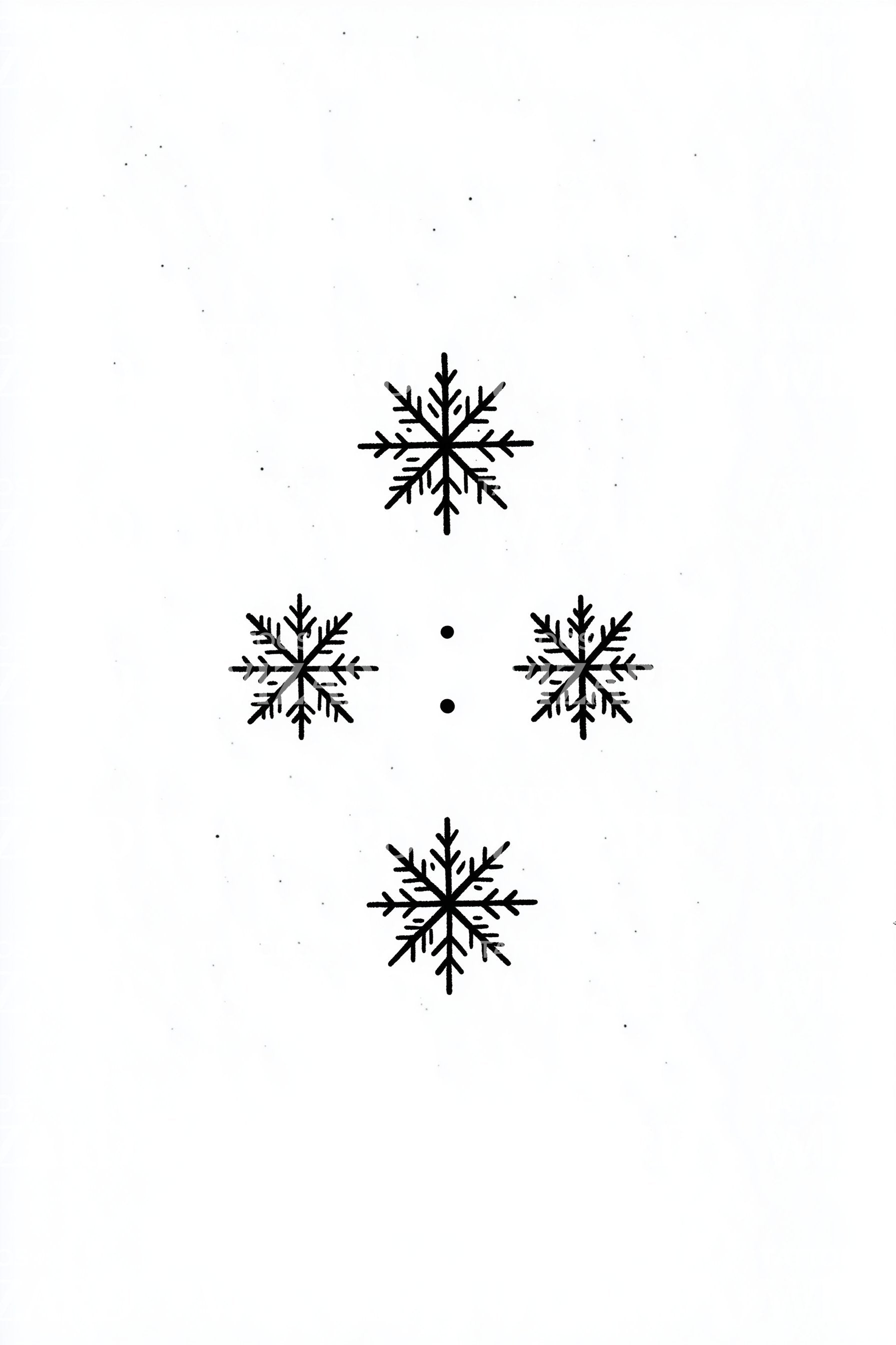 Minimal dotwork snowflakes orbit two quiet dots, forming a serene winter compass. Clean lines and delicate branches suggest ice crystals suspended in still air. Symbol of uniqueness, clarity, and calm, this design whispers pause and presence, letting the wearer feel crisp lightness, quiet strength, and fresh beginnings.