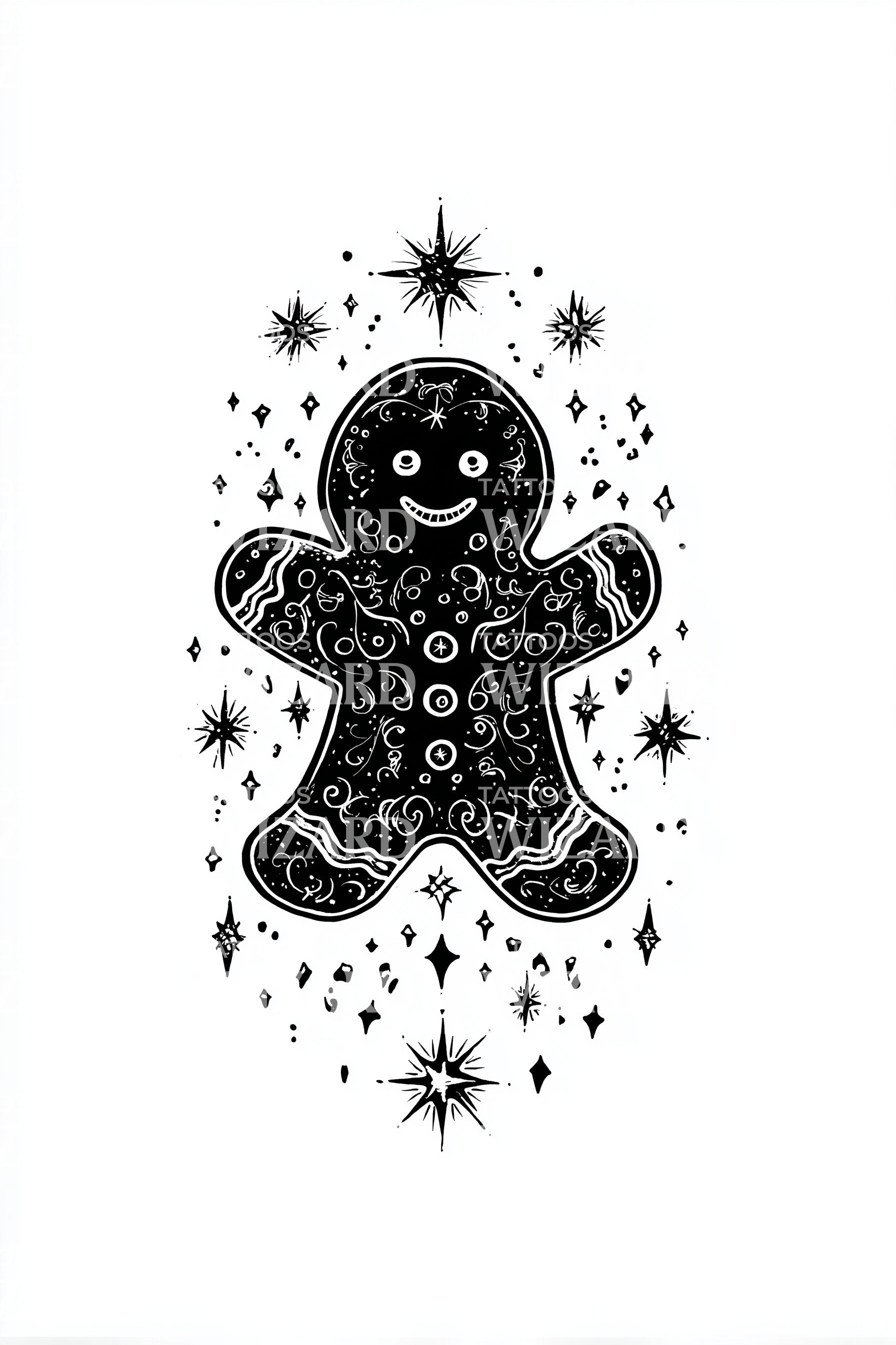 Starry Gingerbread Cookie Tattoo Illustration
