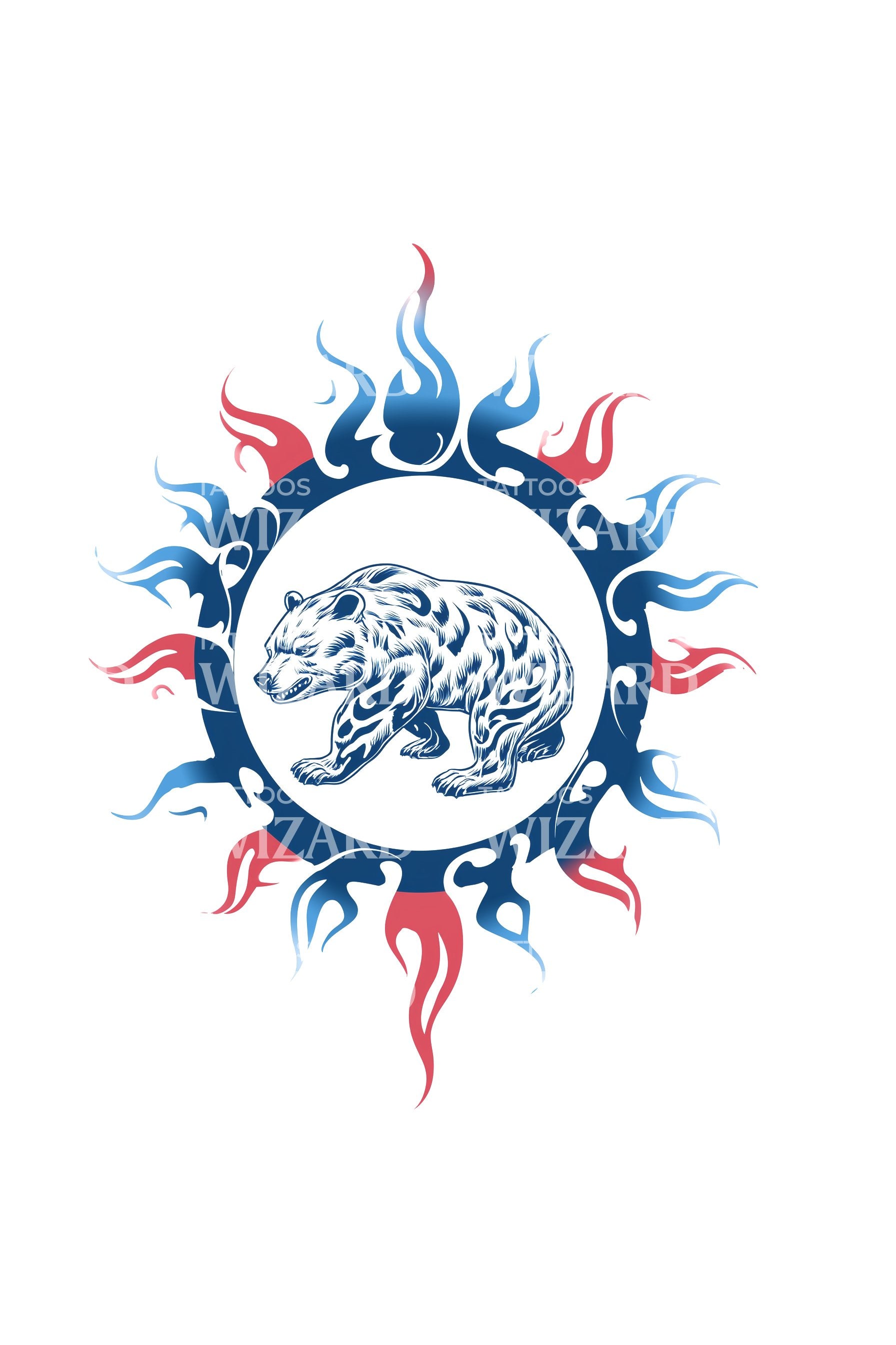 Channel untamed strength with this neotraditional tiger emblem, framed by a radiant sunburst and armor-like shield. Bold lines, palettes, and fierce roar energy fuse vintage charm with modern clarity. A statement of courage, guardianship, and pride, perfect for upper arm, calf, or back centerpiece, timeless, iconic, and striking.