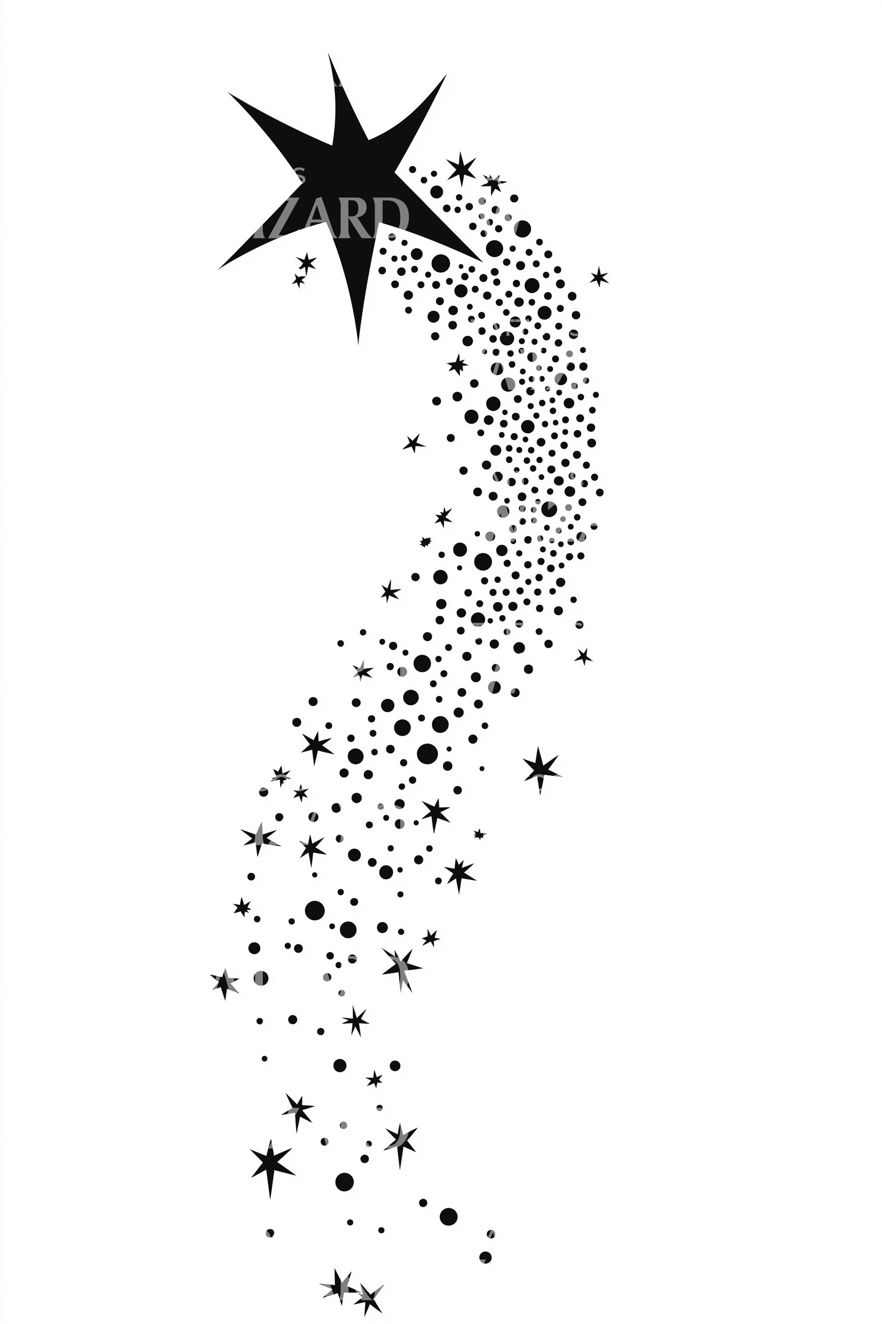 Immerse yourself in the enchanting magic of the cosmos with this whimsical dotwork tattoo design. Featuring a heavenly trail of stars and dots that embody the mysterious allure of the night sky, it's a captivating blend of elegance and fantastic imagination, perfect for dreamers and stargazers alike.