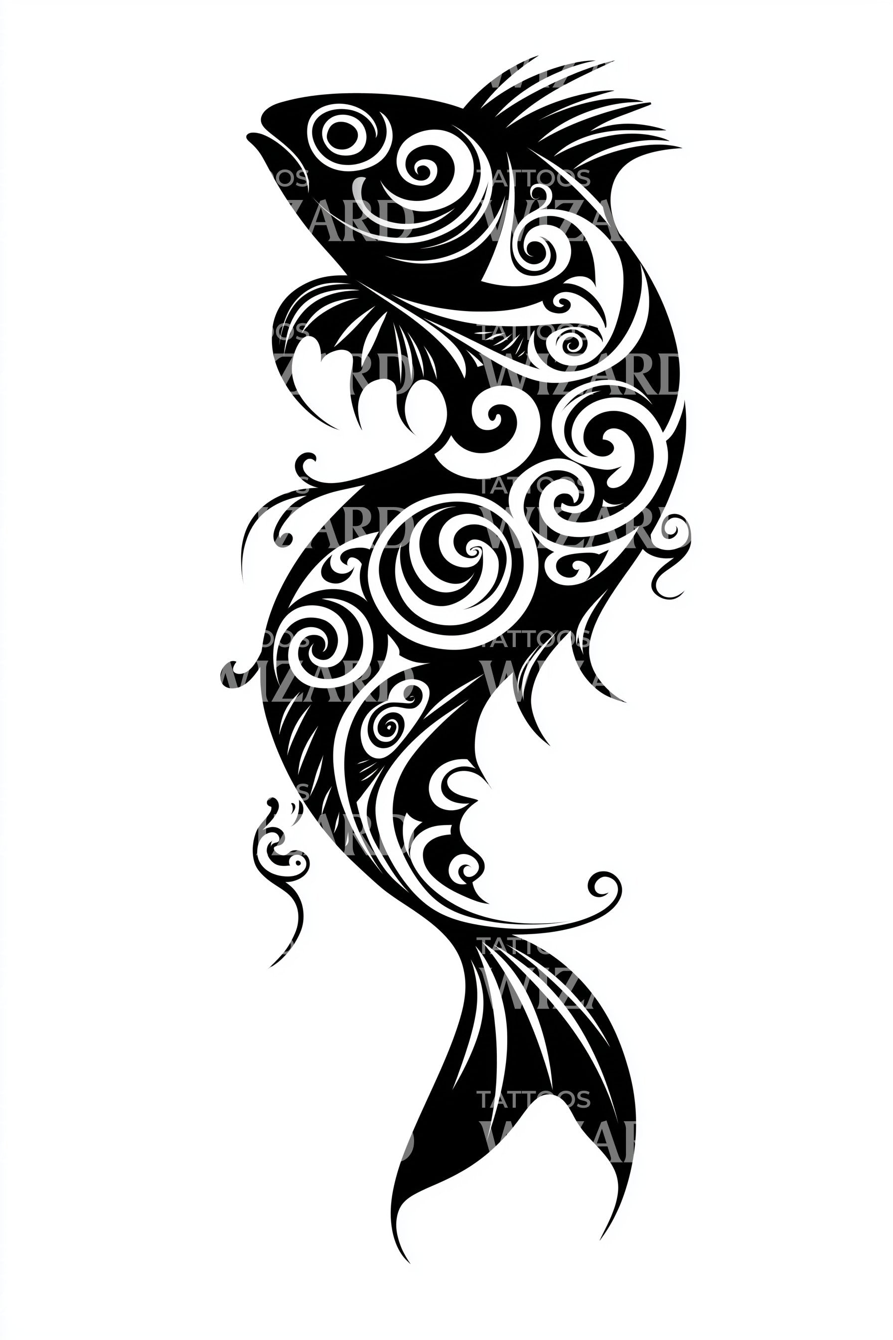 Tribal Koi Swirls Tattoo Design