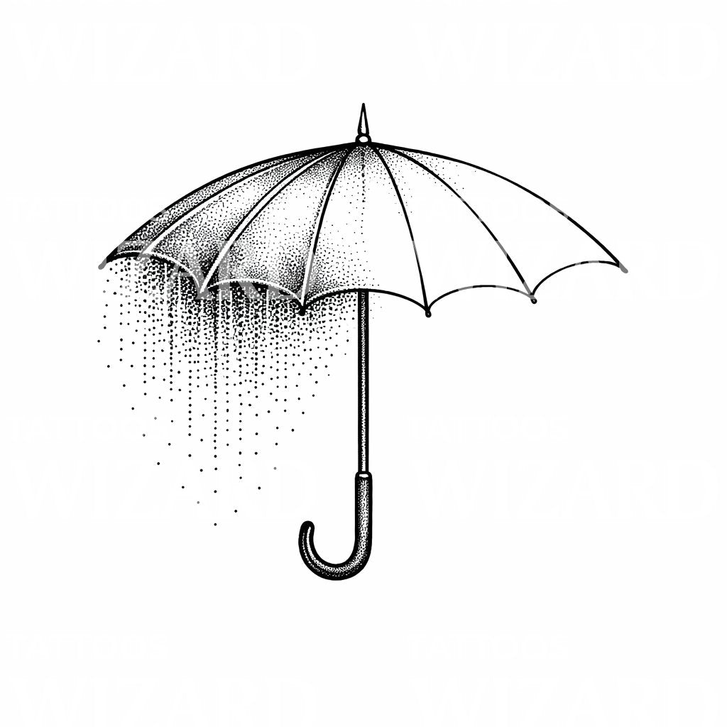 Umbrella Rain Dotwork Tattoo Design