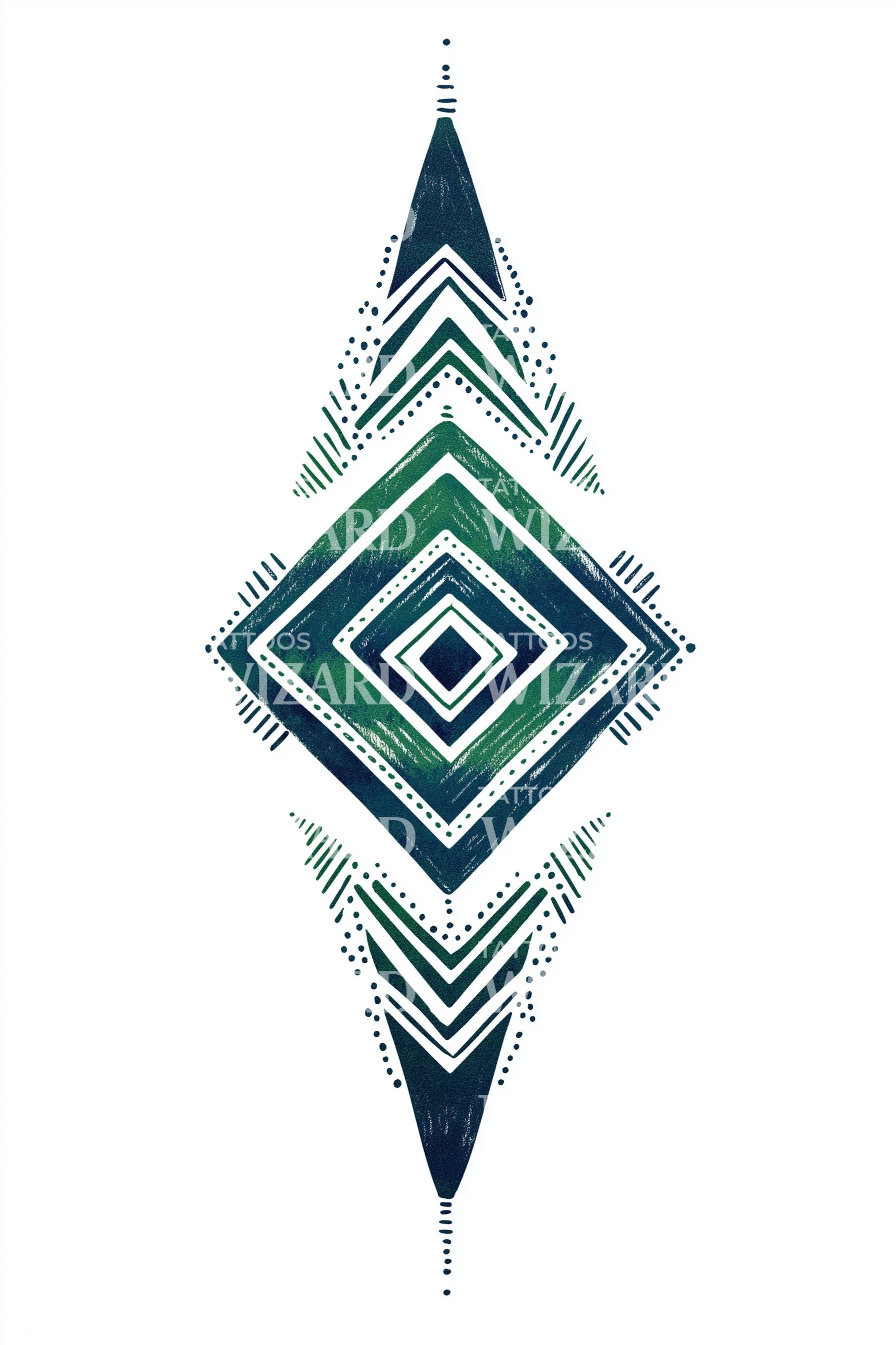 Celebrate sleek geometry with this tattoo design: interlocking diamond facets and rolling wave lines create a mesmerizing pattern inspired by Sierra ridgelines and Leone’s coastal rhythm. Minimal yet bold, it balances symmetry and flow, perfect for forearm, calf, or back, with scaling and placement versatility, for any style.