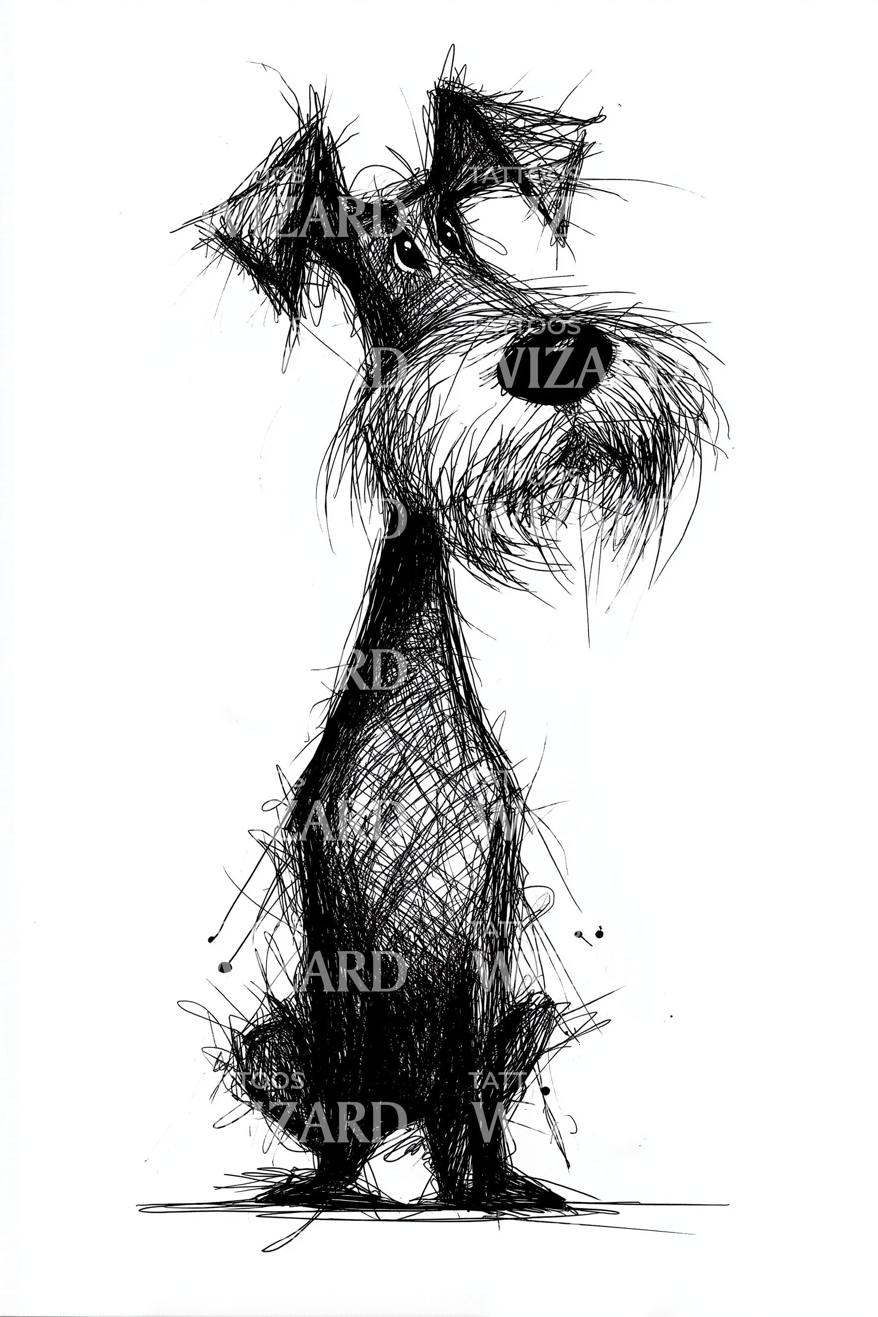 Dive into whimsy with this sketch-inspired tattoo design, featuring a playful schnauzer. A perfect blend of art and fondness for pets, this design encapsulates the spirited essence of your furry friend. Showcase your love for dogs with this beautifully sketched, spirited, and vibrant tattoo piece.