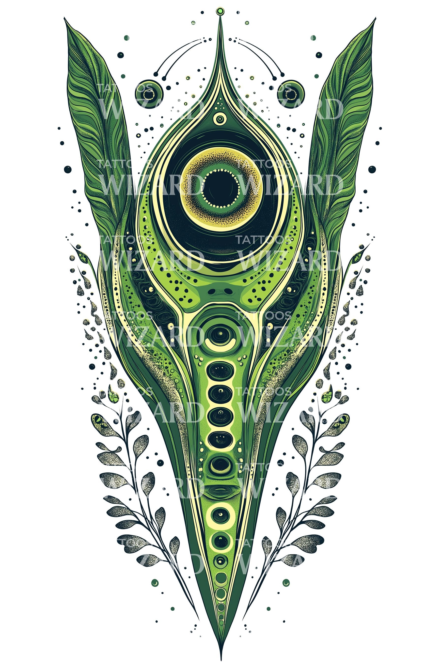 Winged like instinct, an eye like conscience, this ornamental sigil turns growth into guidance. Leaf and totem agree that tenderness can be a shield. Drawn to it are the watchers who refuse numbness, who claim clarity as devotion. A quiet compass that sees.