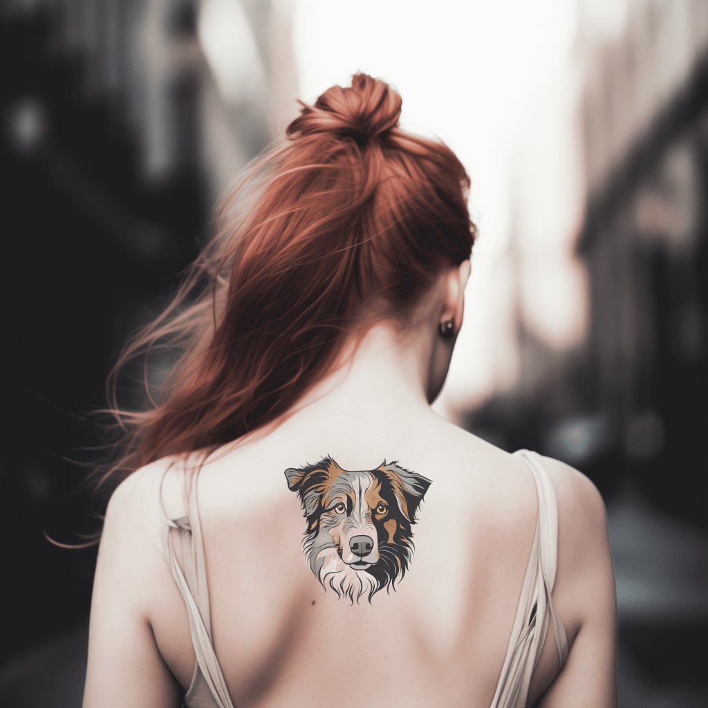 Desenho de Tatuagem da Cabeça de Cão Pastor Australiano