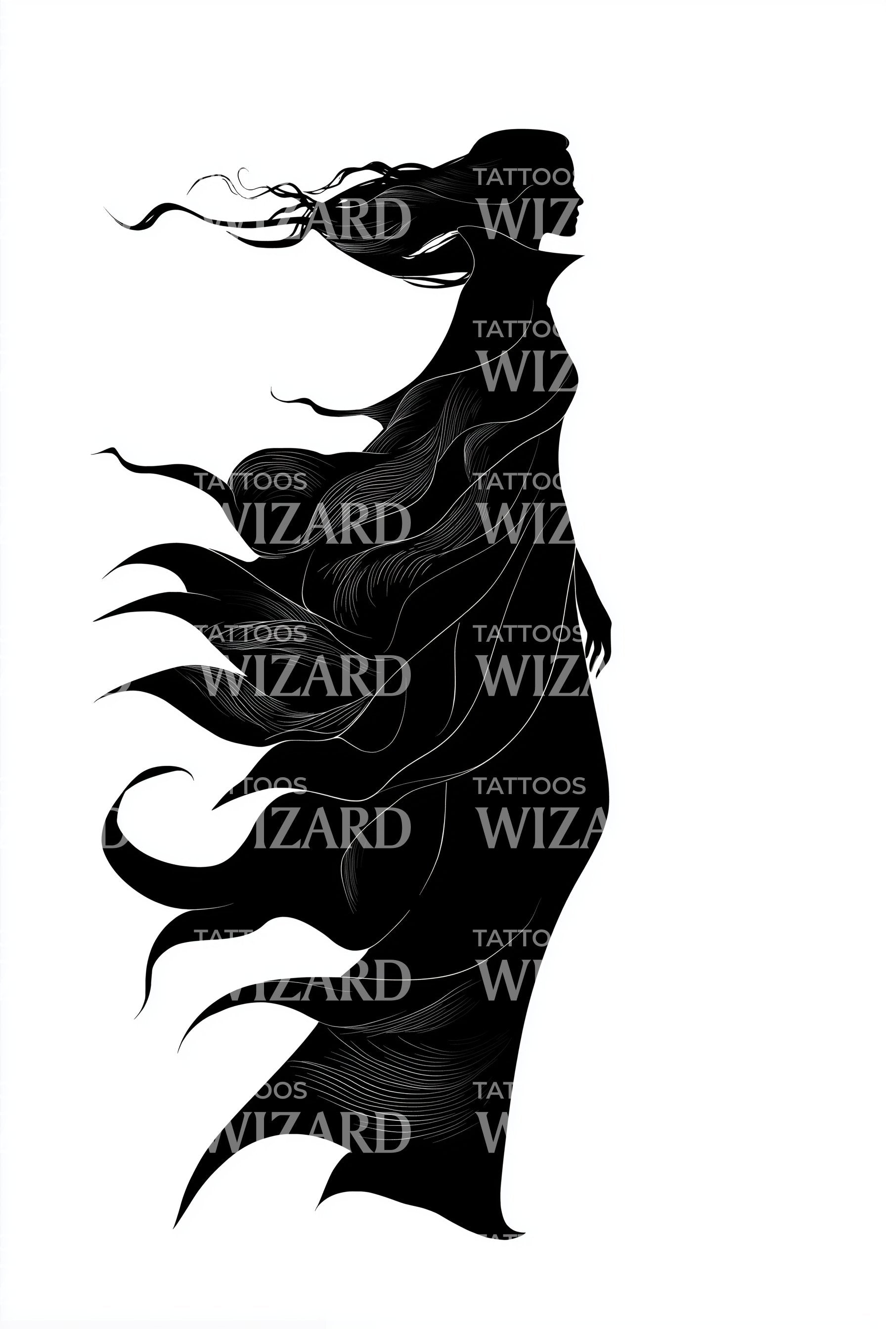 Wind Swept Cloak Tattoo Design