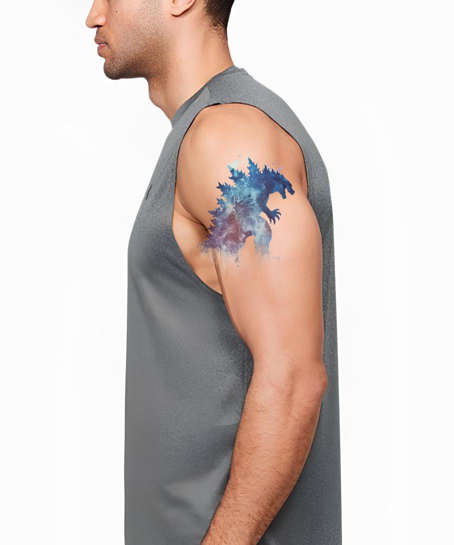 Abraça o teu amor por criaturas icónicas com este design de tatuagem de Godzilla em aguarela. A explosão de cores funde-se perfeitamente neste monstro lendário, criando uma exibição artisticamente deslumbrante. Representa individualidade, força e nostalgia cinematográfica para todos os entusiastas de Godzilla.
