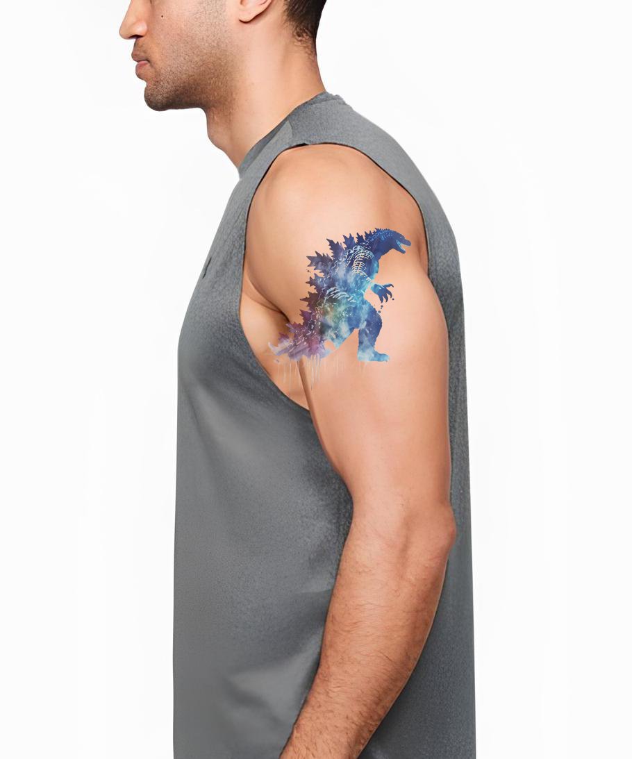 Experiencie a força e a grandeza de Godzilla num design único de tatuagem em aguarela. Esta obra de arte reflete o apelo monstruoso com pinceladas delicadas, misturando tons vívidos, dando vida ao lendário monstro. Uma perfeita personificação de força e beleza para todos os entusiastas de Godzilla e tatuagens.