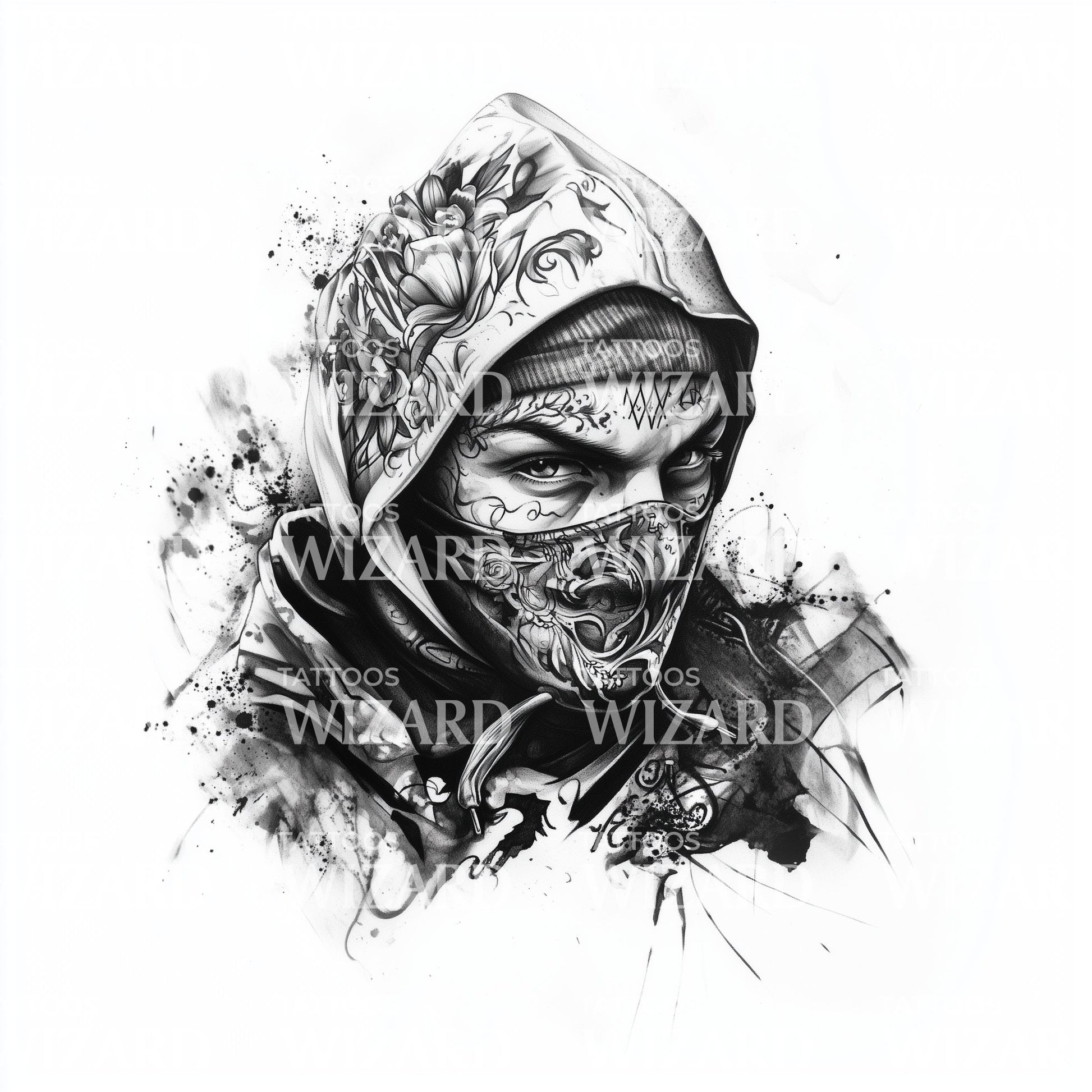 Experimente a essência crua da cultura urbana de rua com o nosso design de tatuagem inspirado em graffiti a preto e cinzento. Um testemunho dos espíritos rebeldes, esta peça única em blackwork combina a estética áspera dos bairros com um detalhe impressionante. Perfeita para quem procura incorporar o pulsar da cidade na sua pele.