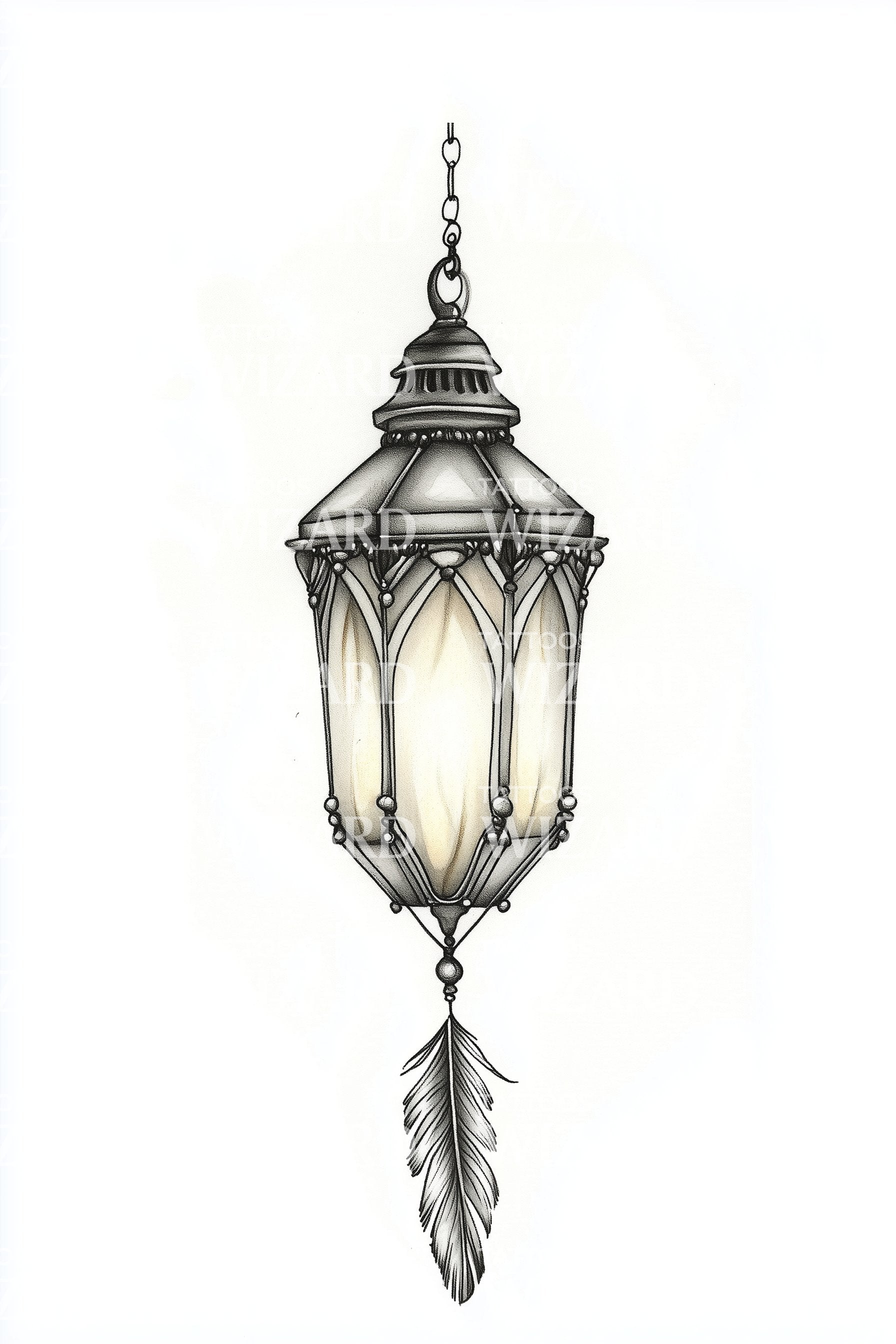 Vintage Hanging Lantern Tattoo Design