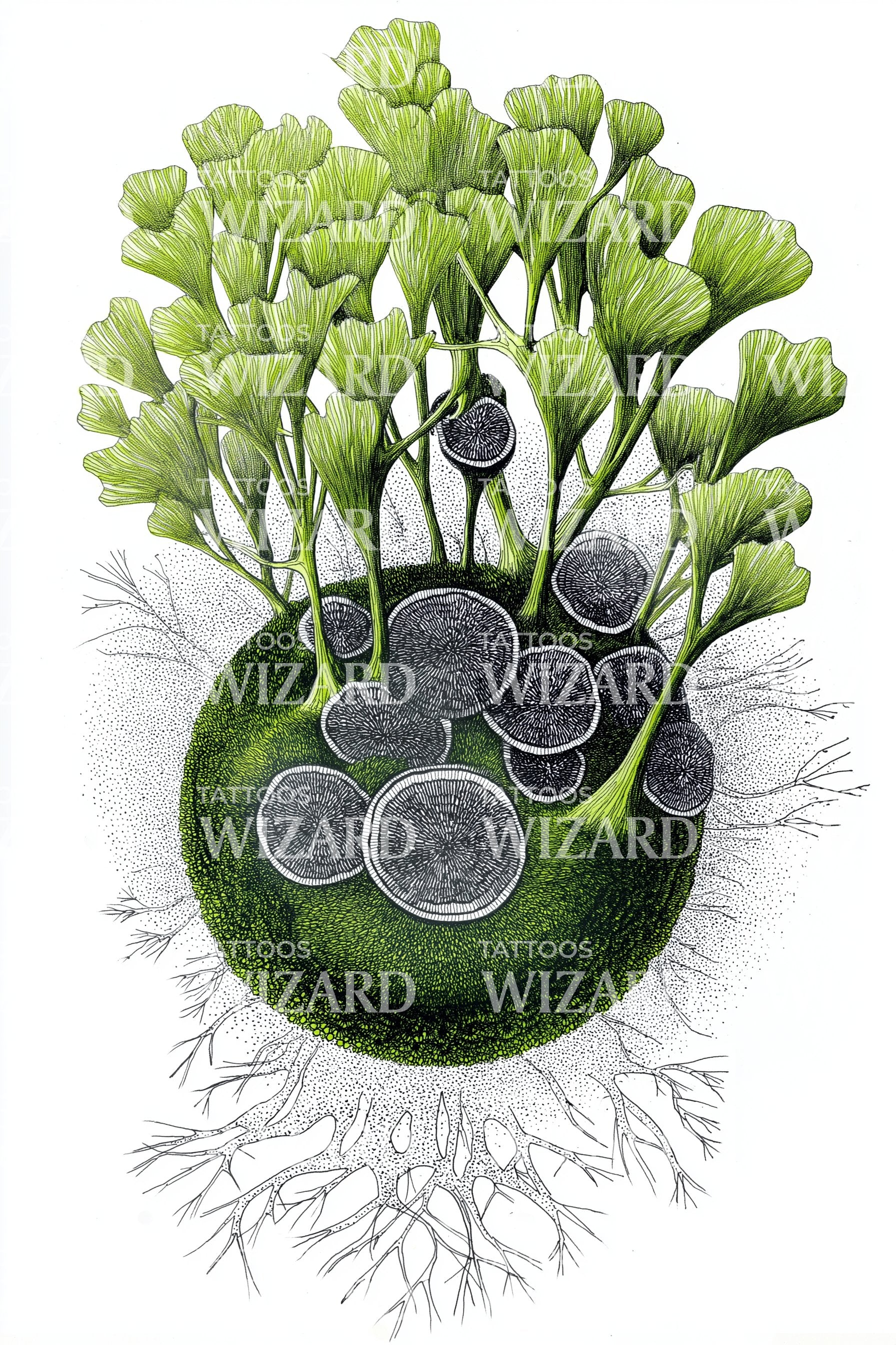 For the ones who know healing is mutual, not solitary. Leaves rise from a green sphere like a cell learning its own name, an ecosystem that thrives on connection and quiet patience. Botanical truth, microscopic and vast: “Let my roots remember the light I share.”