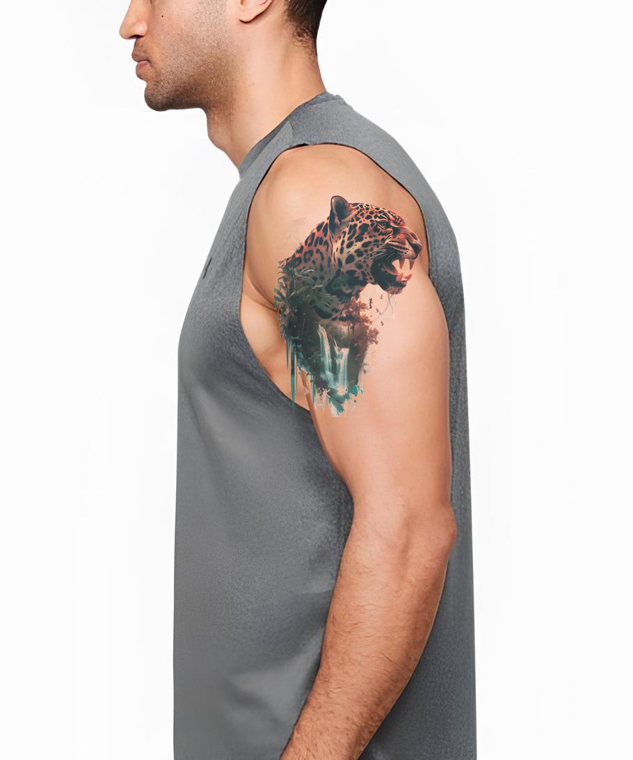 Mergulhe no realismo impressionante deste desenho de tatuagem, capturando o espírito feroz da natureza selvagem. Abrangendo uma onça-pintada, uma pantera e um leopardo, esta composição revela a fúria perigosa destes grandes felinos predadores. Mergulhe na força bruta e na beleza dos felinos mais elegantes da natureza.