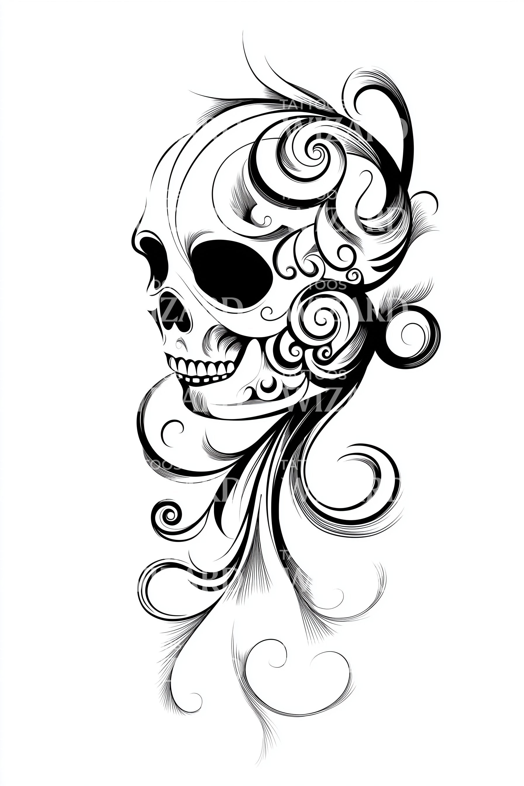 Este delicado desenho de tatuagem fineline captura harmoniosamente a beleza do existencialismo. Apresentando um crânio minimalista e ao mesmo tempo caprichoso, cada linha gravada com uma arte excecionalmente detalhada. Este design exala uma sensação leve e arejada, apesar do seu tema sombrio. Criado com a melhor tinta, perfeito para amantes de arte corporal subtil.