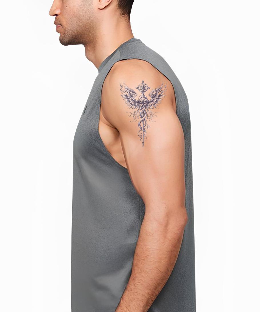 Desenho de Tatuagem Magnífico do Caduceu Alado