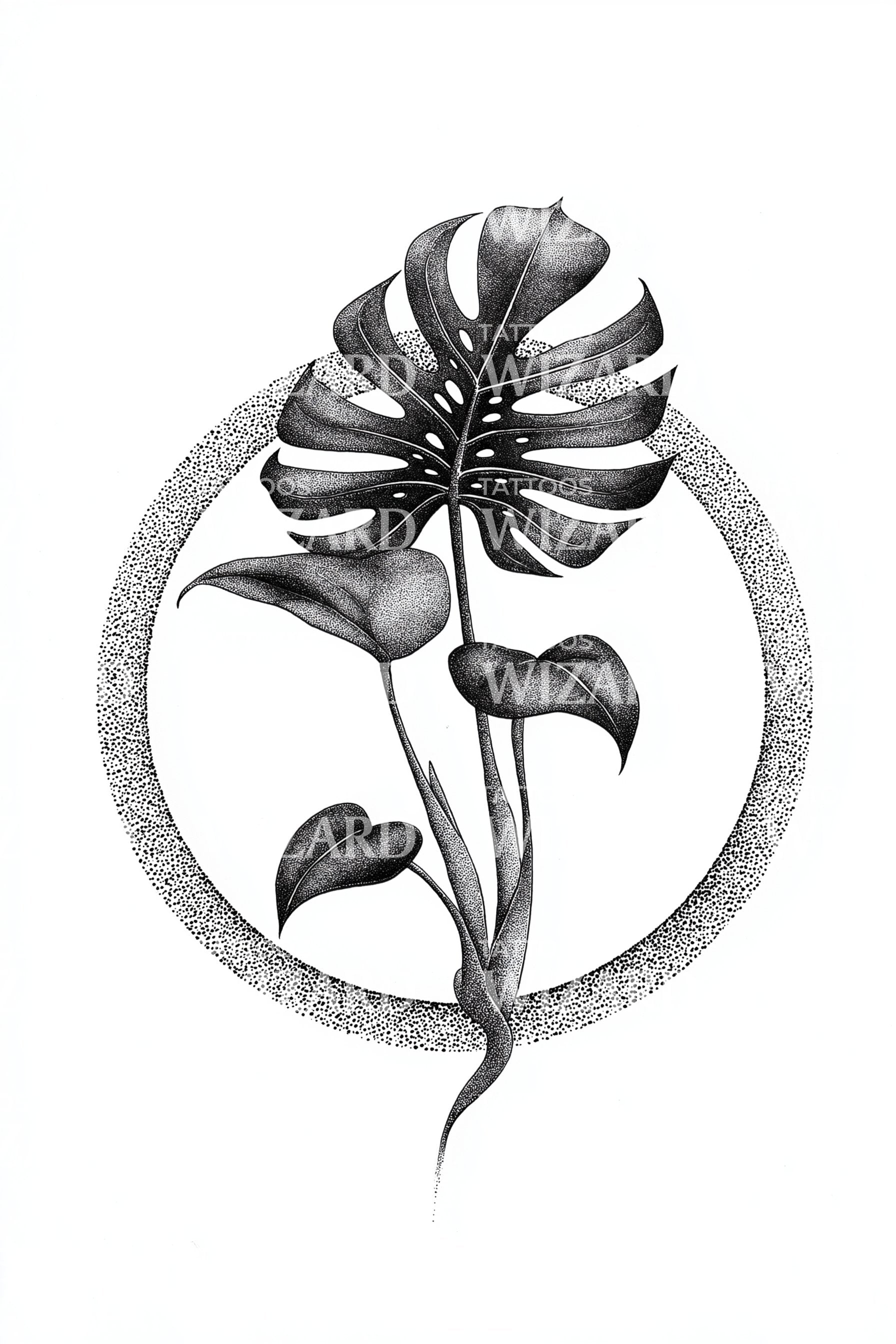 Monstera Dot Circle Tattoo Design