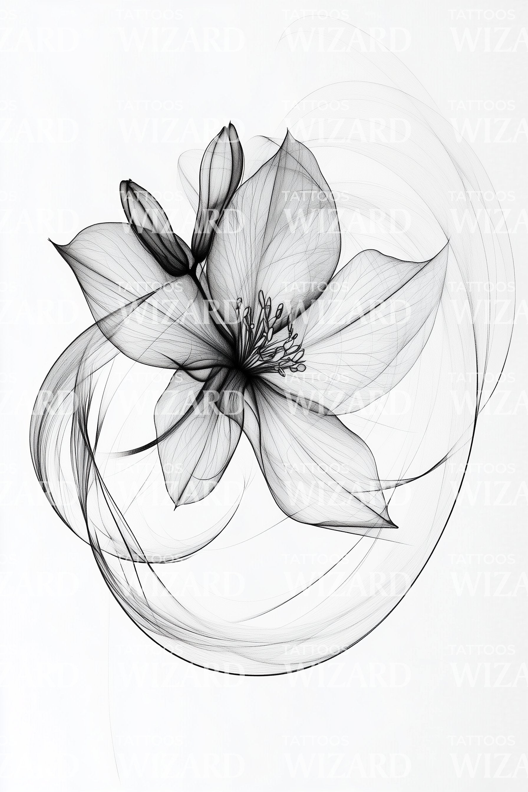 Este elegante desenho de tatuagem em esboço apresenta uma flor simples, mas bela, com pétalas delicadamente desenhadas. Perfeito para apreciadores da estética minimalista monocromática. É uma expressão sublime da beleza natural que garante uma combinação de simplicidade e sofisticação na sua pele.