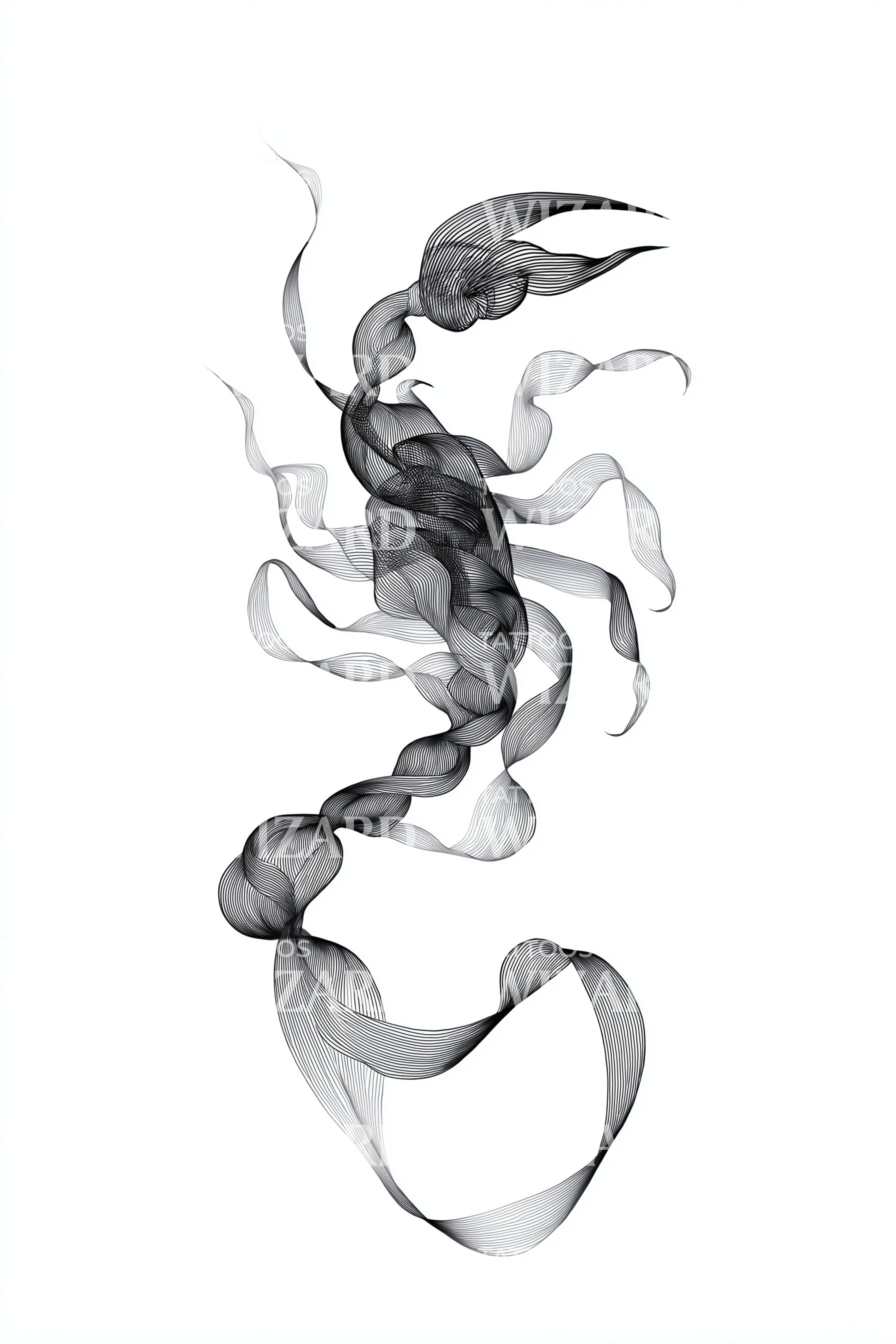 Este design de tatuagem minimalista incorpora uma mistura graciosa de elementos abstratos. A fita fumegante sussurra pela pele, capturando uma essência de beleza efémera. O seu fluxo fluido revela uma elegância subtil, criando um símbolo único de graça, perfeito para refletir as nuances da sua própria história.